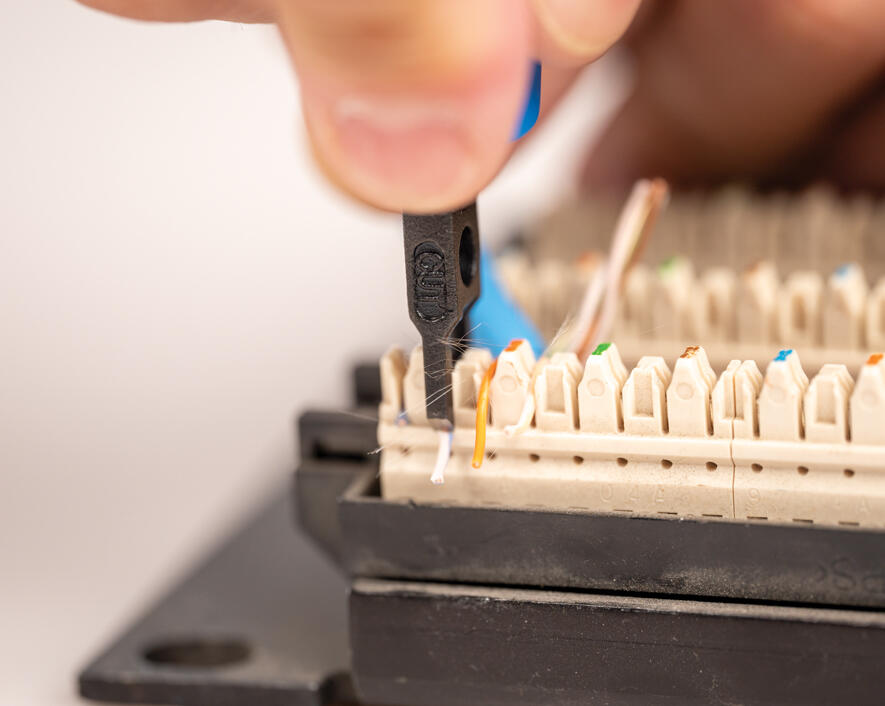 - 110 blade with cutter trims excess wire when punching down