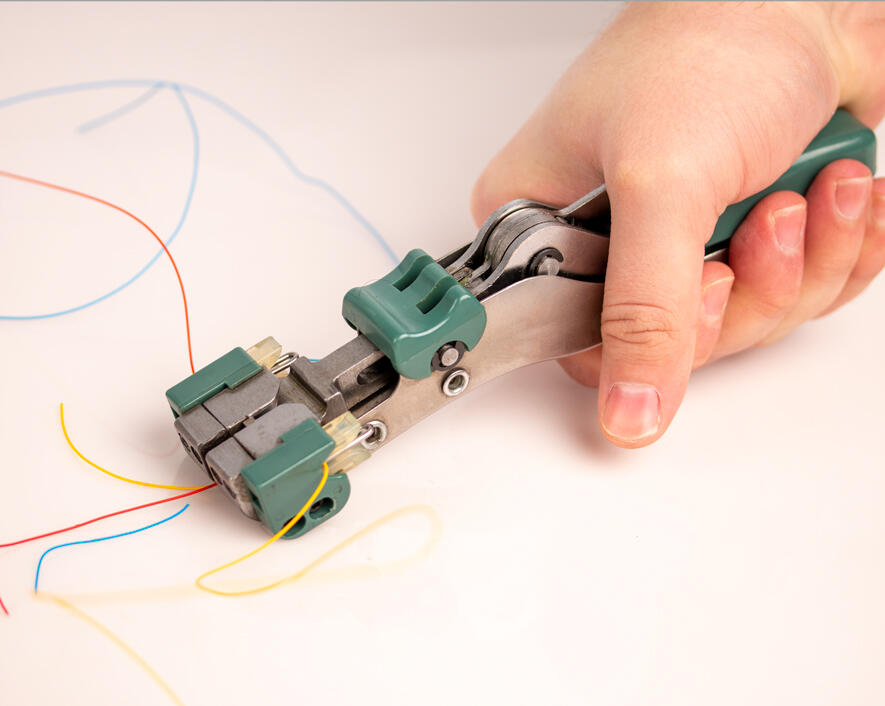 - Built-in wire cutter locates the connector on the anvil and cuts excess wire during crimping