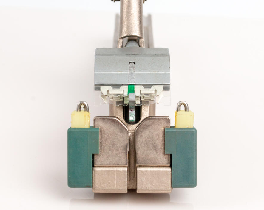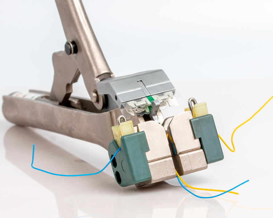 - Built-in wire cutter locates the connector on the anvil and cuts excess wire during crimping