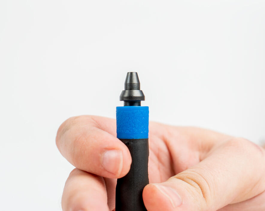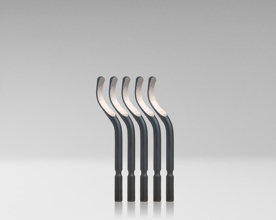- S-shaped blade cleanly deburrs the edges and insides of microduct tubes