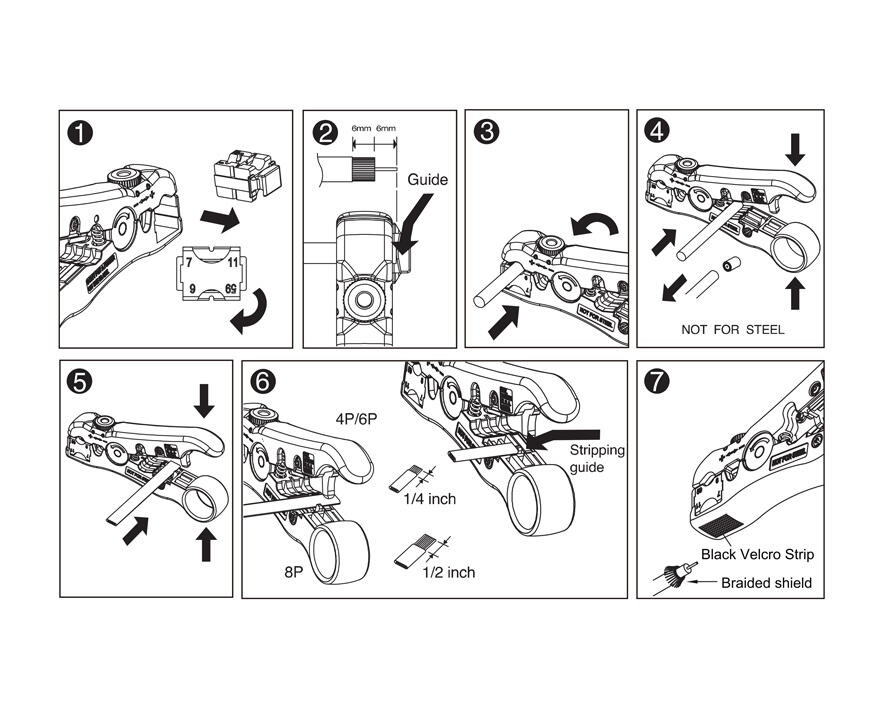 - Adjustable stripping hole is used to strip CAT3/4/5e/6/6A PVC and Plenum network cables