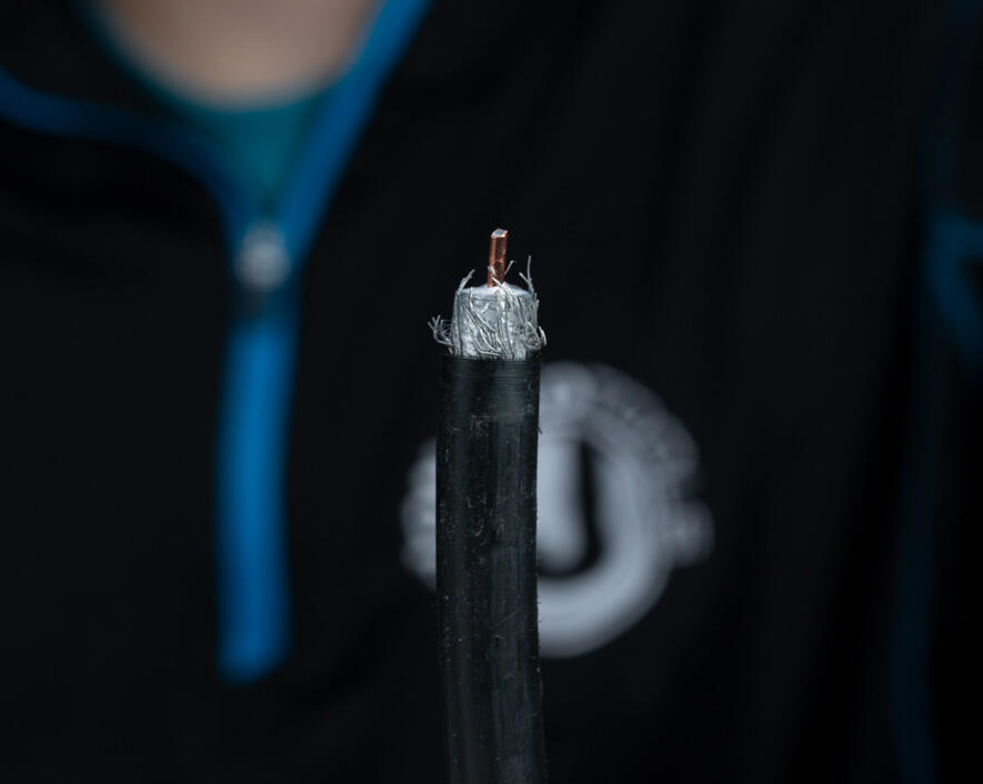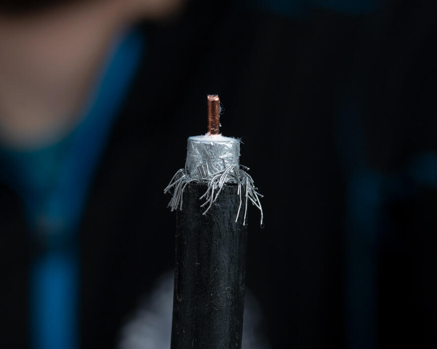 - Stripping action removes 1/4" of jacket and 5/16" of shield and dielectric, which exposes the center conductor