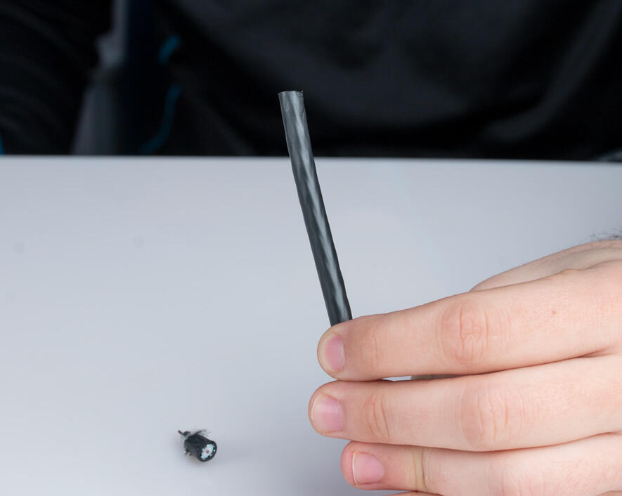 - Hook and loop strip on bottom of the tool folds back the braided shield on the cable with ease