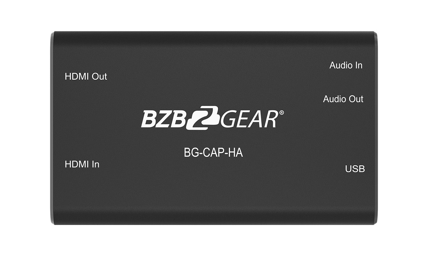 BZBGEAR introduces the PLUG & PLAY BG-CAP-HA capture card. It lets you easily capture an HDMI source and save it on your computer or storage device. It's perfect for recording from cameras and A/V Equipment. It supports video at resolutions up to 4K@60Hz 4:4:4 HDR10 with a capturing resolution of 1080P@60Hz. It features a loop output allowing your display to remain uninterrupted and has the capability of embedding an external analog audio source into the HDMI signal, or de-embedding the HDMI audio to feed an external device. It supports H.264 Video Format (Software Compression) that works on multiple operating system platforms (Windows 7/8.1/10, Mac, and Linux OS). Compatible with most 3rd party software such as OBS Studio, vMix, FaceTime, Microsoft Teams, Skype, GoToMeeting, Zoom, YouTube Live, Facebook Live, and Ecamm, etc. It Supports USB 3.0 (MJPG/YUY2) and USB 2.0 (MJPG).