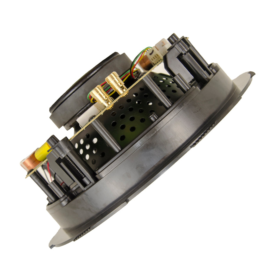 A simple switch on the Tweeter Bridge allows you to choose either Dipole for Side Surround or Bipole for the Surround Back function. In the Dipole function the tweeters are purposely out of phase to create a Null around the listening area that detunes the localization for ambience. When set to Bipole the tweeters are in phase to enhance localization for Dolby Digital EX, DTS-ES and THX EX. The Infinite Baffle design makes it the ideal choice for typical applications in open beam attic or enclosed ceilings.