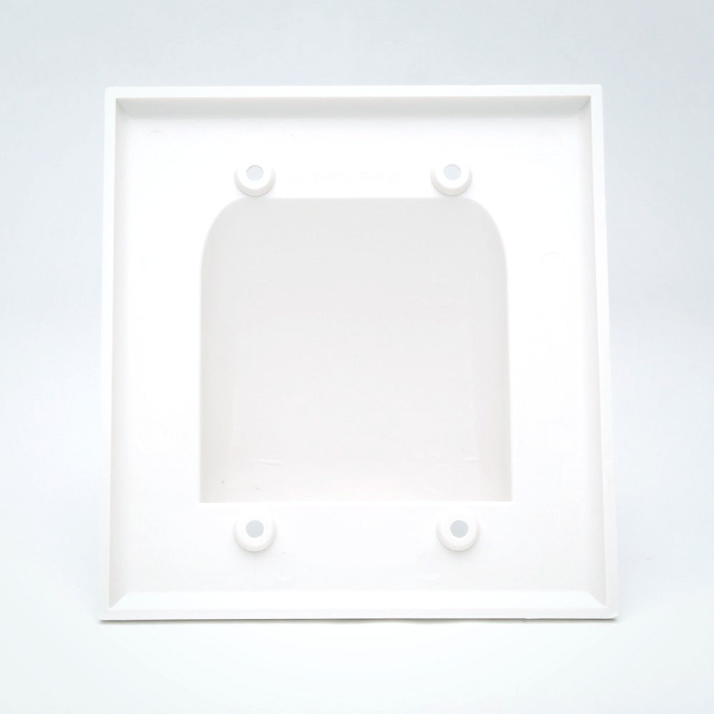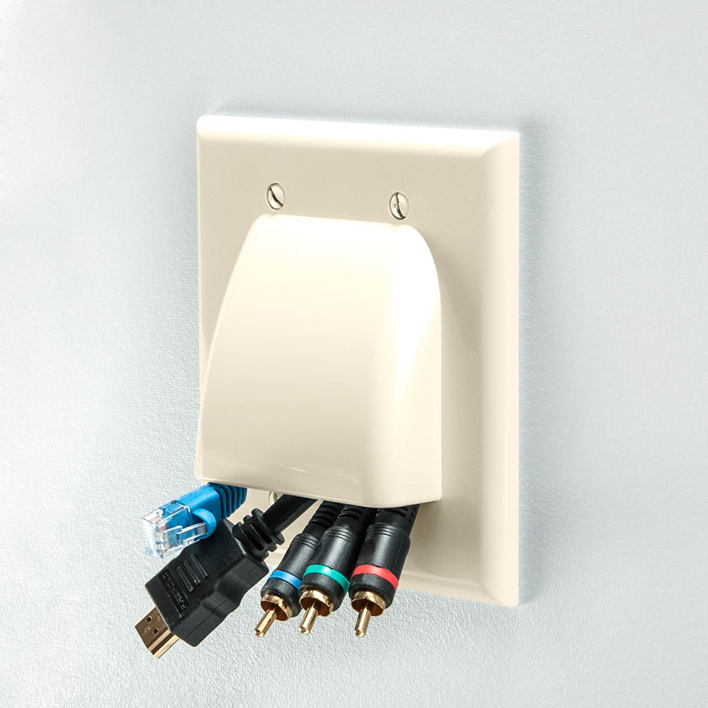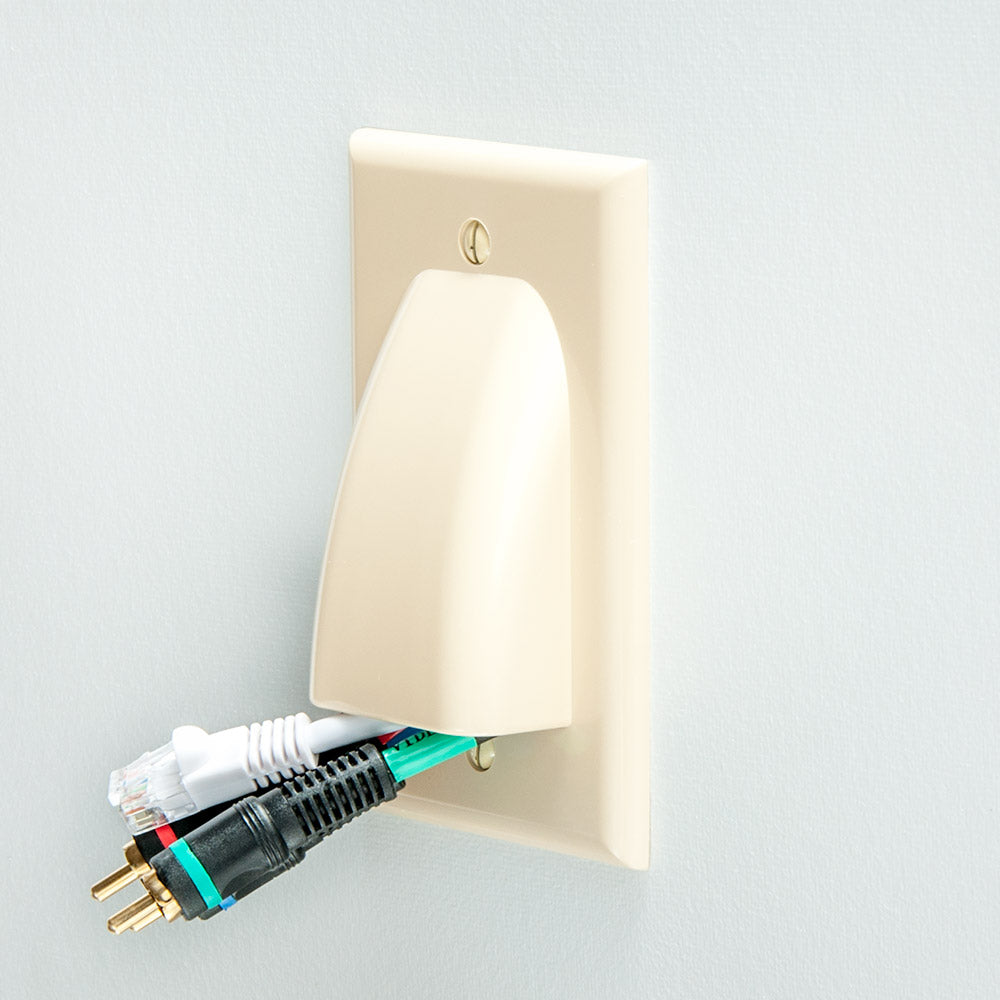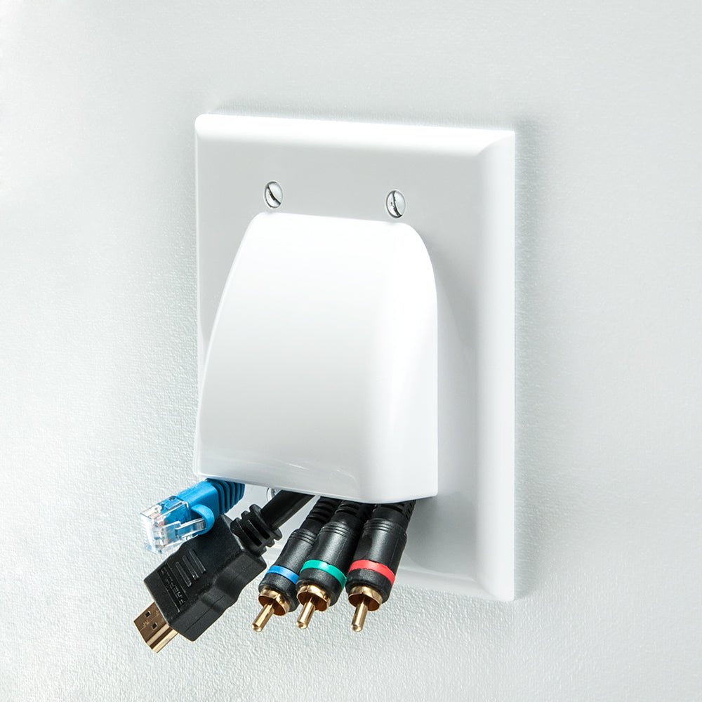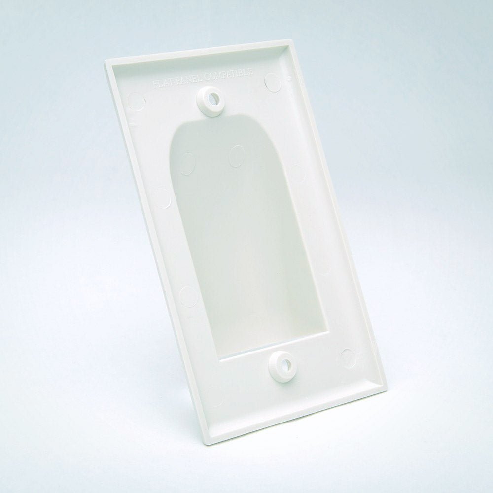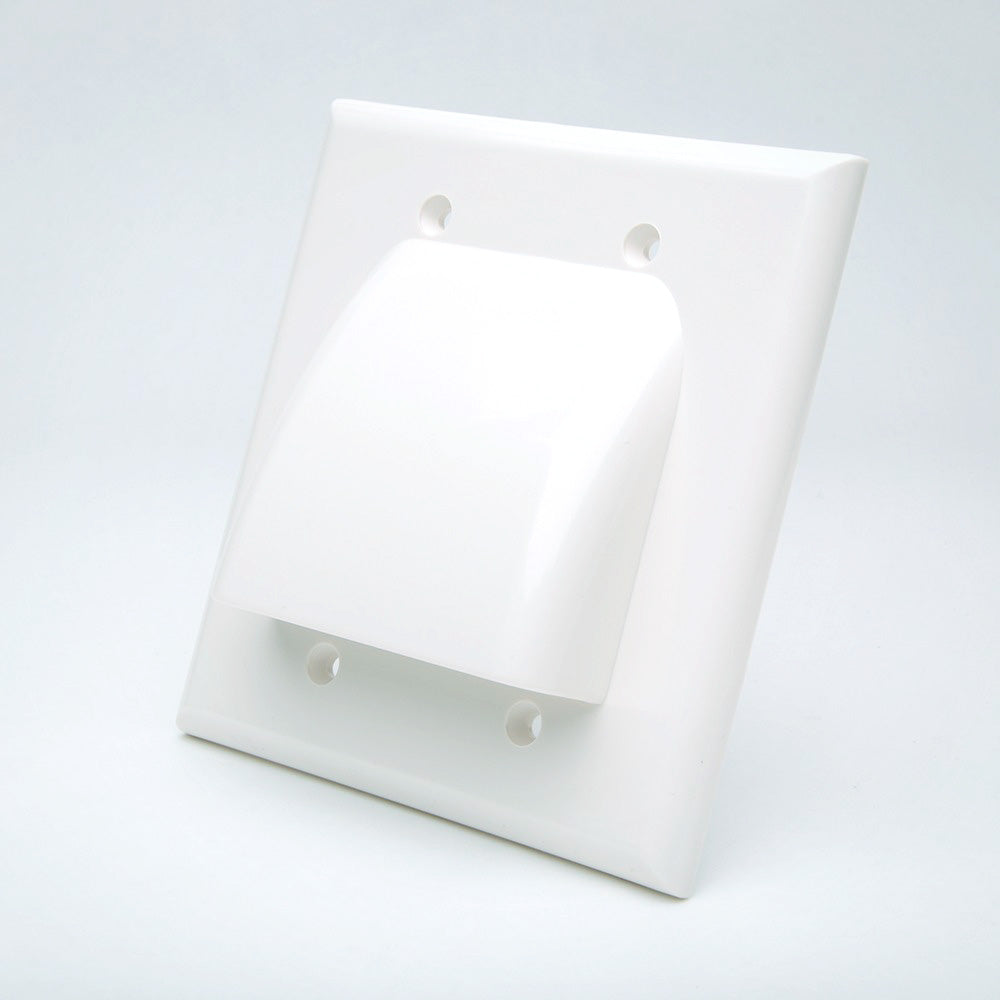 Simplify your cable installation with the WP-SLIMBULK from Vanco. This spout-style bulk cable wall plate can be used to cover the exit point for low voltage cables to create a clean, professional look without adding any extra time or wire. Using the included color-matching screws, this wall plate attaches easily to any gang box or bracket. The minimum clearance for this plate is 1-3/16” and it is wide enough to accommodate the head of a VGA cable. The low, flattened profile means this wall plate can fit safely in many tight spaces including behind furniture and some television mounts. In visible areas, the smooth glossy finish and natural white color make this pass-through wall plate a sensible choice.