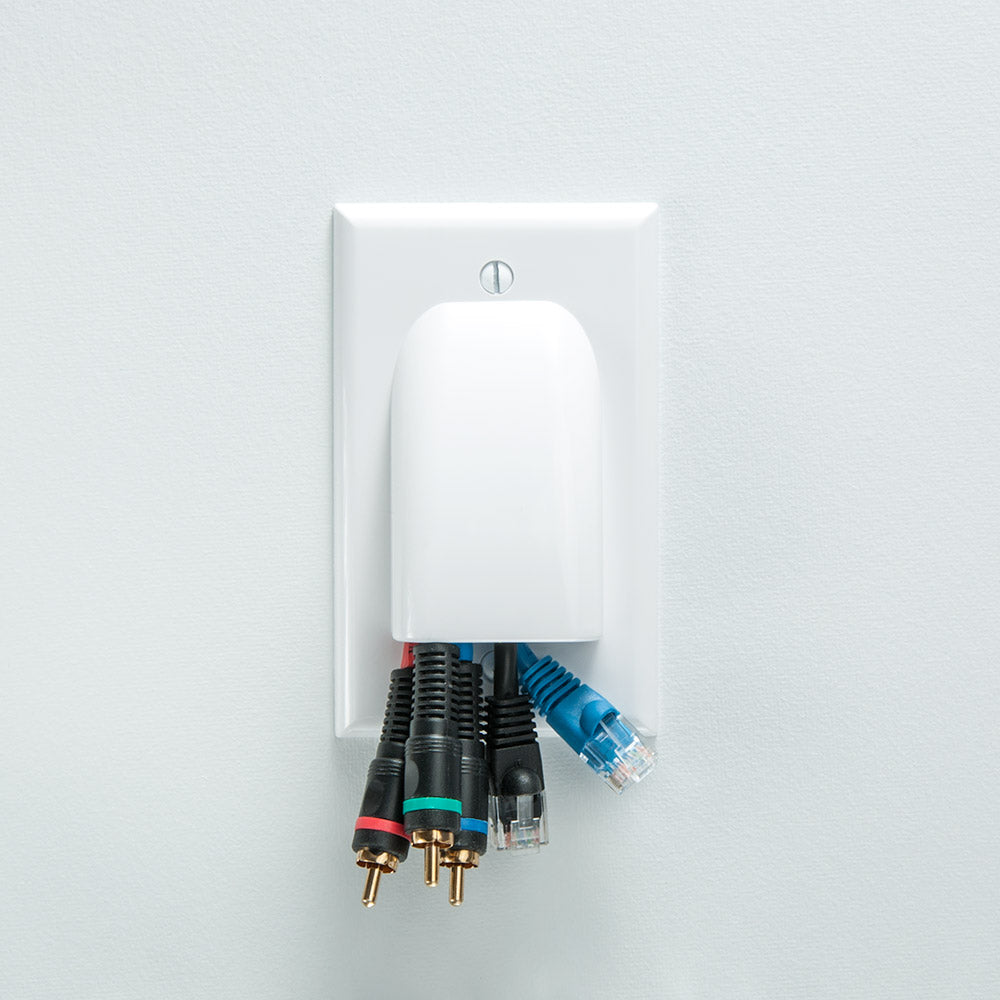 - Slim, compact housing allows for multiple bulk cables to be organized between wall and flat panel TV for professional installations