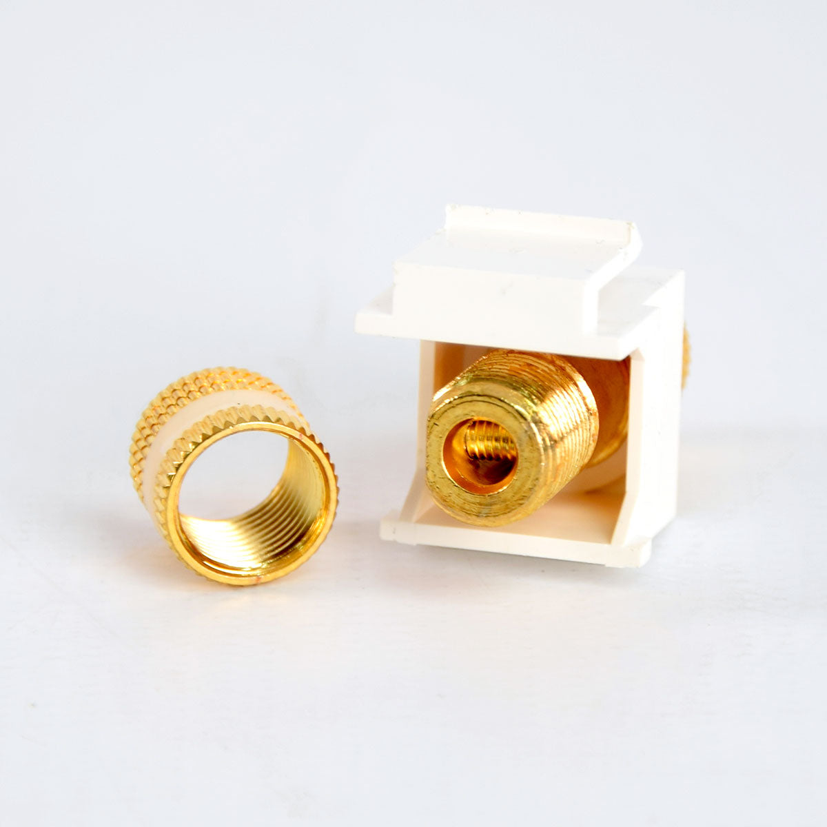 This white keystone insert snaps easily into most standard keystone wall plates, surface mounts, and patch panels. It has a banana plug connector for speaker wire so you can connect audio devices directly to a wall plate. It helps to provide a finished, professional look to your studio, home theater, or office. The back unscrews to allow you to route audio wire into the jack via the binding post connector.