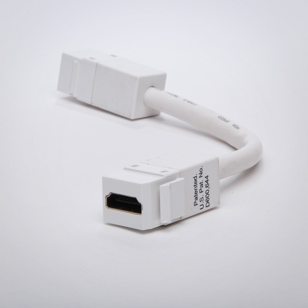 Restore cable lawfulness with the HDMI-KJ-CABLE, a keystone jack for use in keystone wall plates. The easy plug-in ports make running wires through your wall simple and attractive. This jack allows you to use the shortest mess-free cable lengths from your devices to the wall, making them easier to manage and hide. With gold-plated connectors and support for the latest high-definition resolutions, compatibility is of no concern. The lead-free HDMI pigtail is extremely flexible to help prevent any positional strain on the small pin connectors.