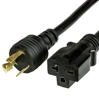 World Cord NEMA L6-20P to 6-15/20R T-SLOT 20A 250V 12/3 SJT Power Cord - Black