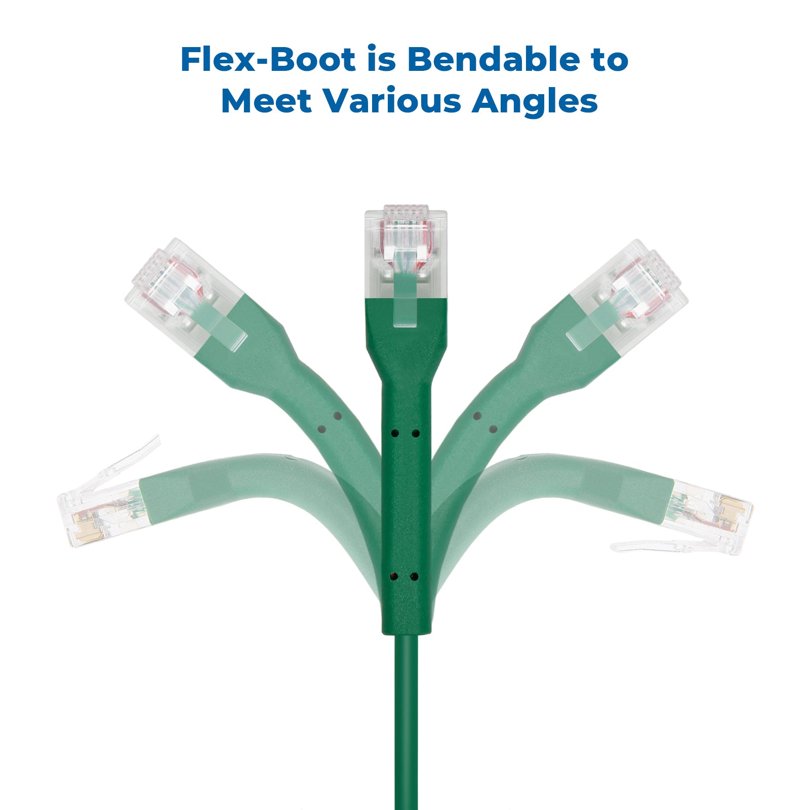 Unique boot design enables multi-angle bending of the RJ45 connector for easier cable management in confined spaces. -