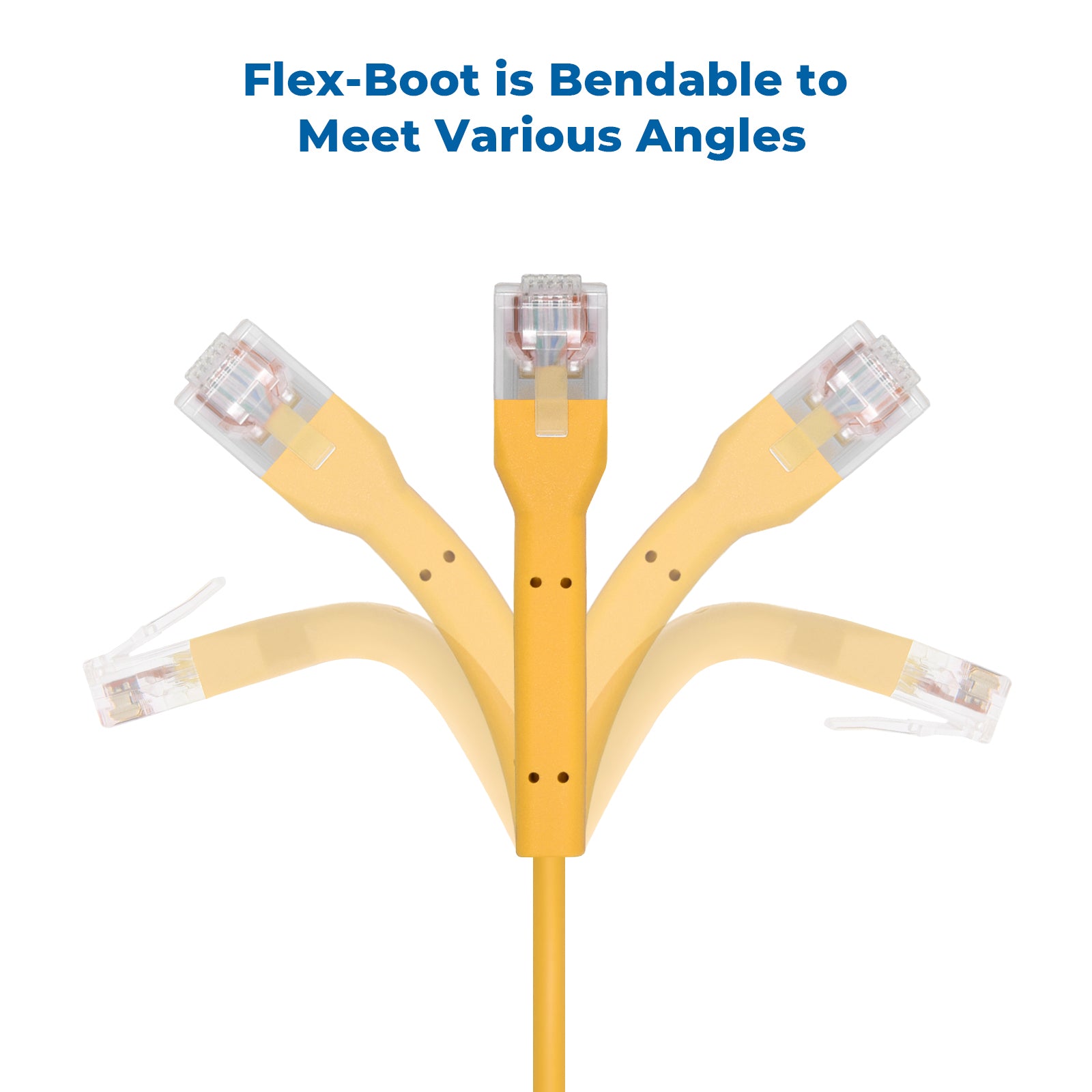Unique boot design enables multi-angle bending of the RJ45 connector for easier cable management in confined spaces. -