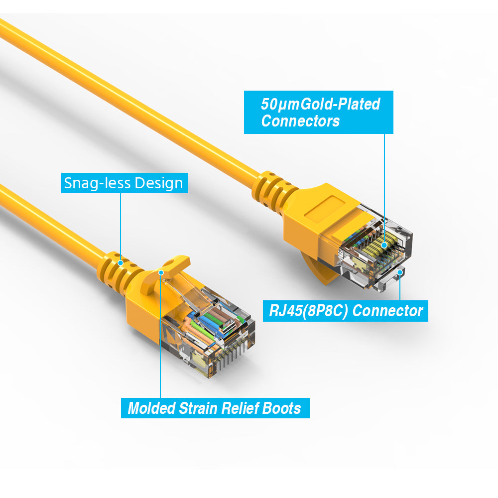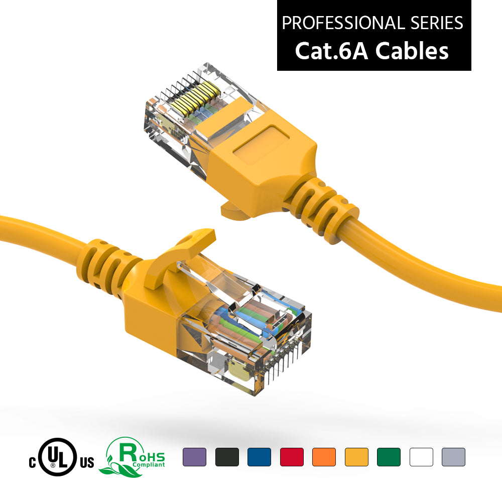 Cat6A Slim Ethernet Patch Cable, 28AWG, Snagless Boot - Yellow