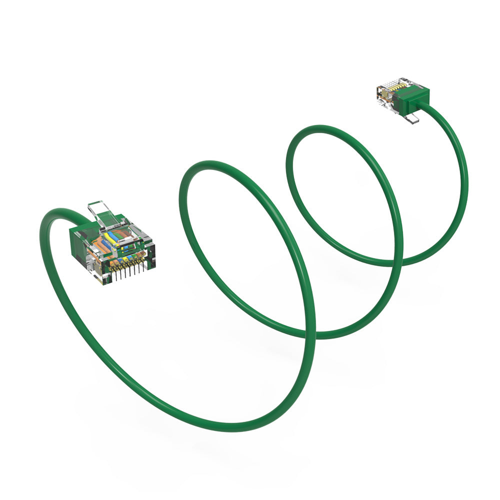 Cat6A Super-Slim Ethernet Patch Cable, UTP, Bare Copper, 32AWG - Green