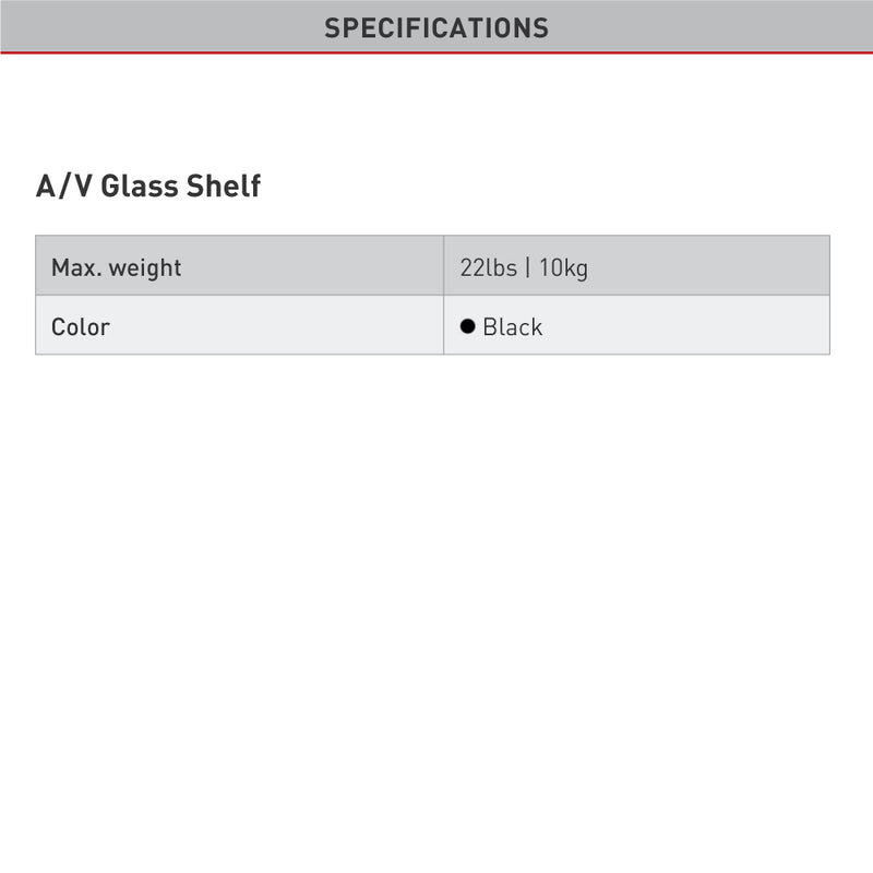 Glass A/V shelf for weight up to 22lbs/ 10kg.