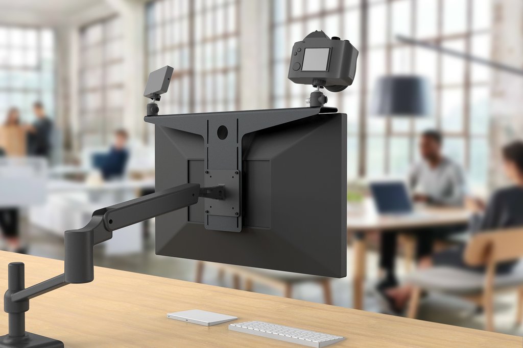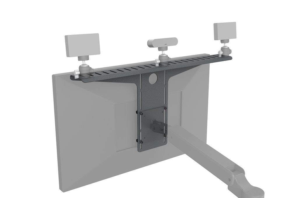 Elevate your video conferencing and online streaming setup with the Heckler Camera Shelf, made for monitor arms. Near-universal compatibility lets you bring your cameras, microphones, and lights together with your monitor to keep your video streaming organized with a clean look.