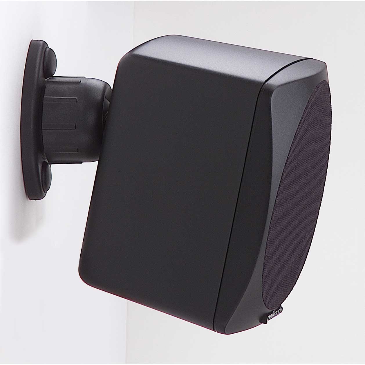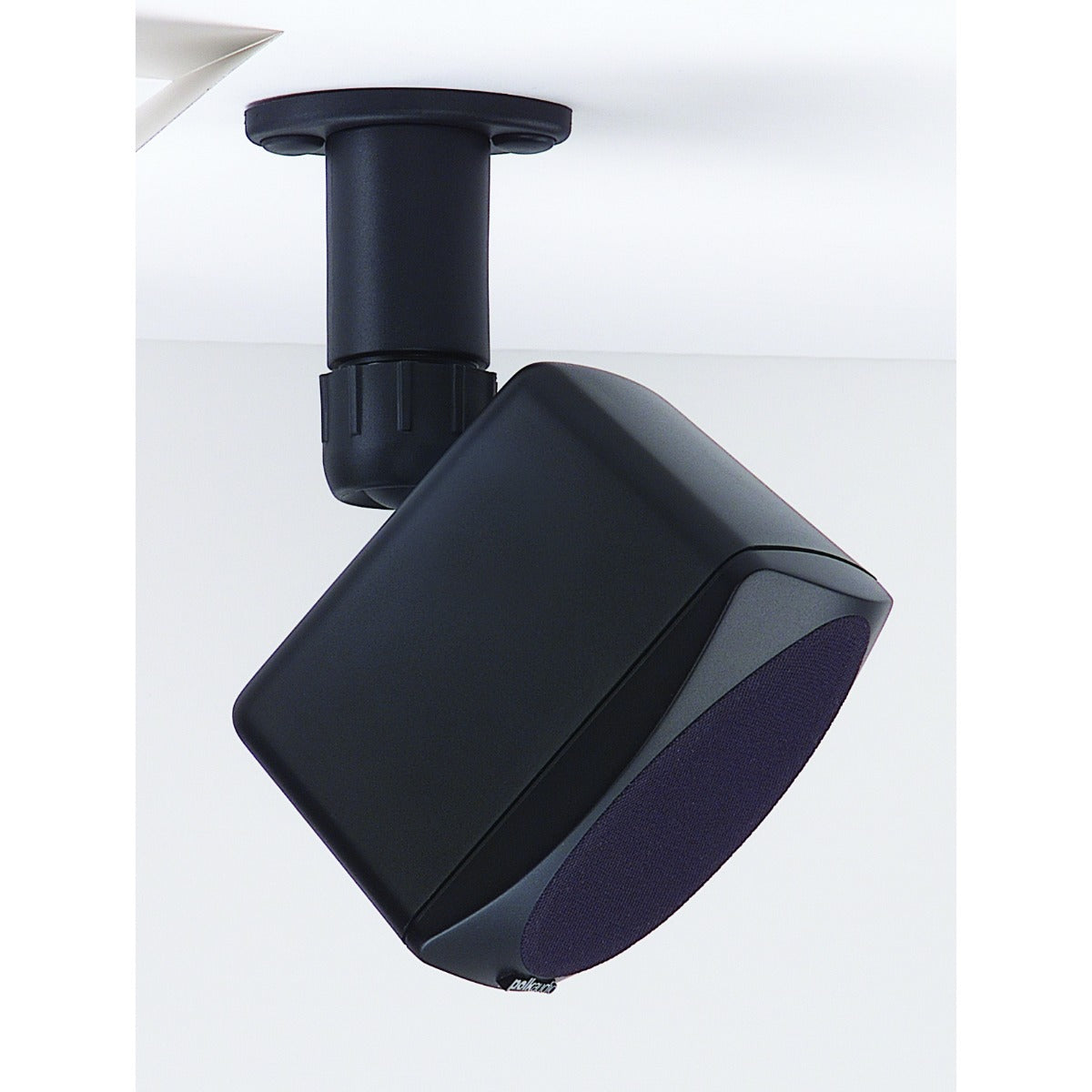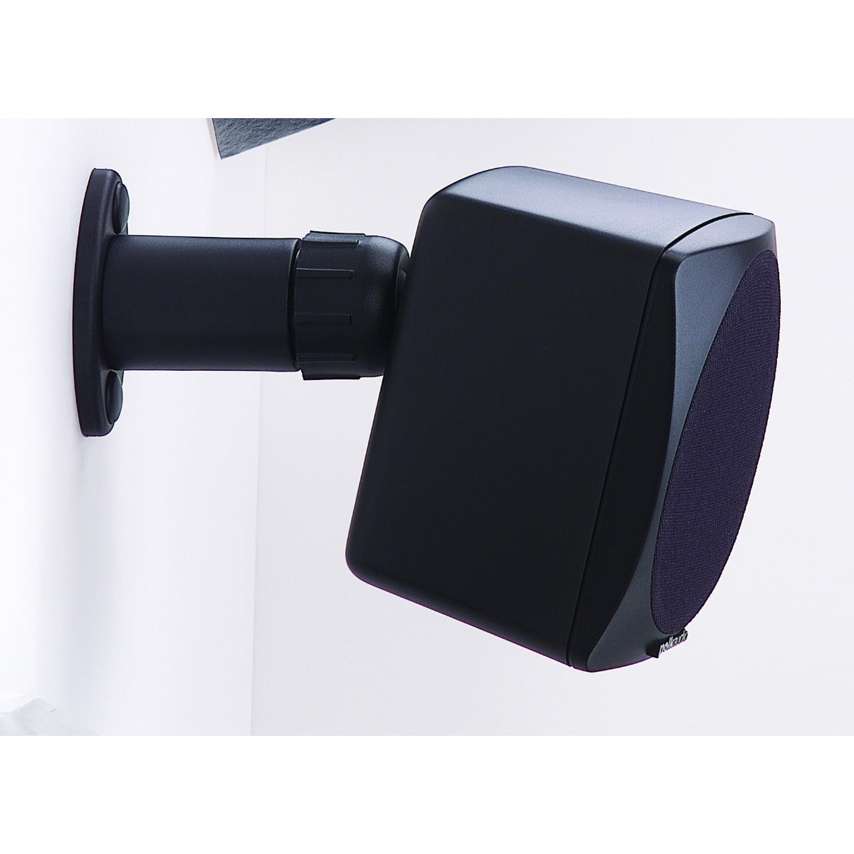 Universal speaker mount for most surround sound and satellite speaker brands weighing up to 20 lbs. Ball and socket design provides 37.5° up or down rotation to maximize speaker sound. Speakers can be flush mounted or use 3” extensions included for wall or ceiling installations. (One mount included.)