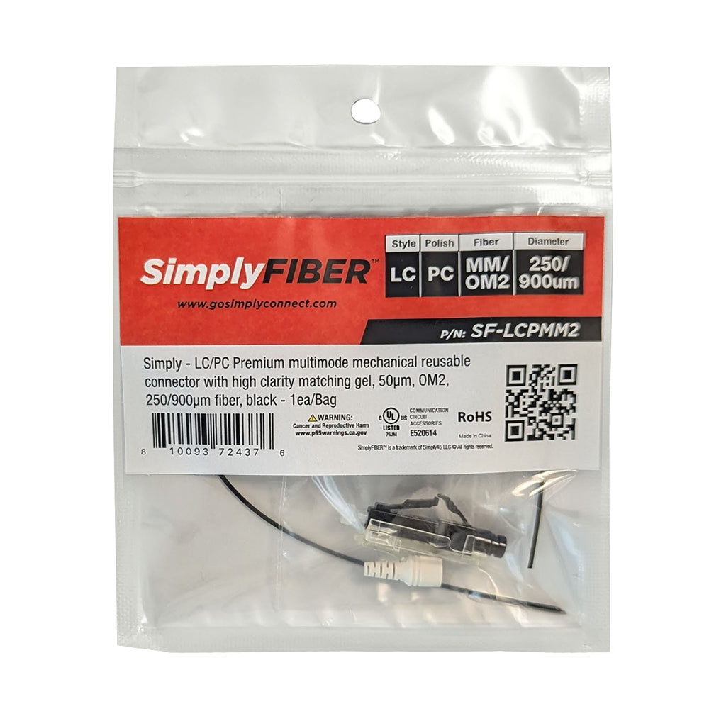 Simply – LC/PC Premium multimode mechanical reusable connector with high clarity matching gel, 50µm, OM2, 250/900µm fiber