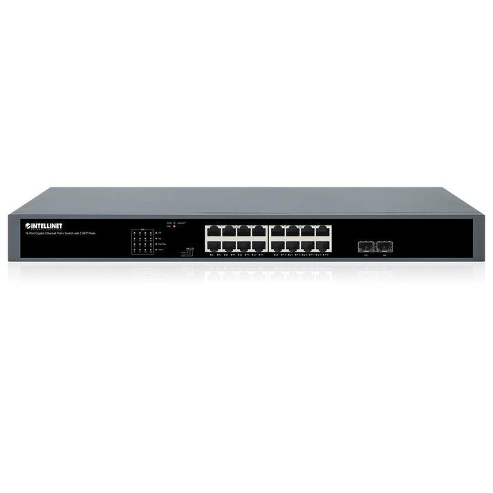 • Intellinet 16-Port Gigabit Ethernet PoE+ Switch with 2 SFP Ports, 561983