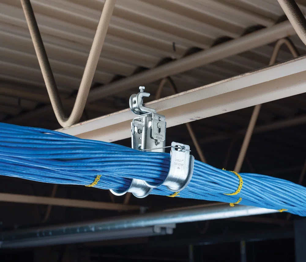 - Rounded edges on J-Hooks provide proper bend radius support for high performance data cables