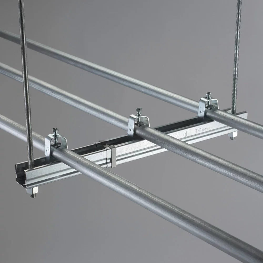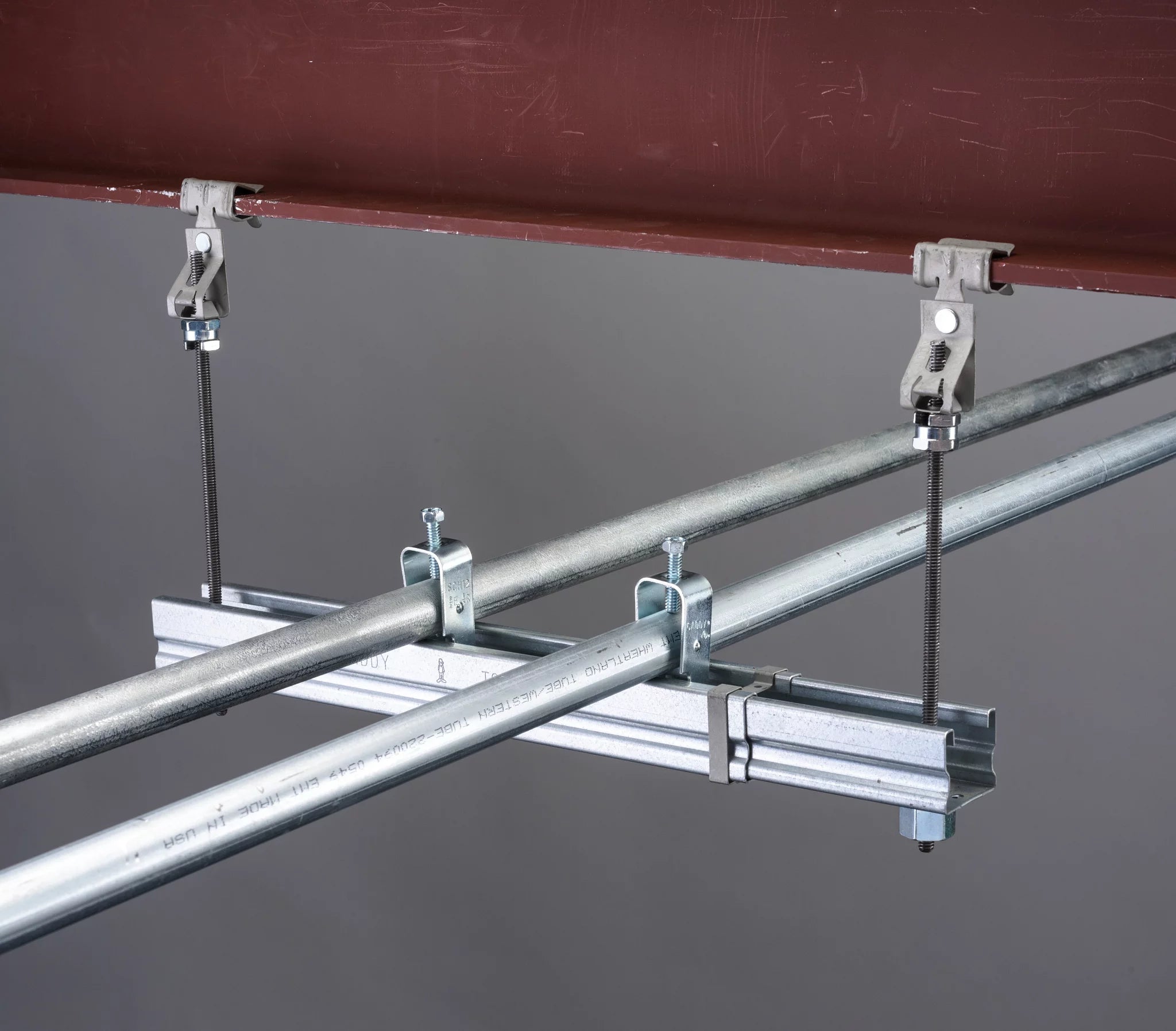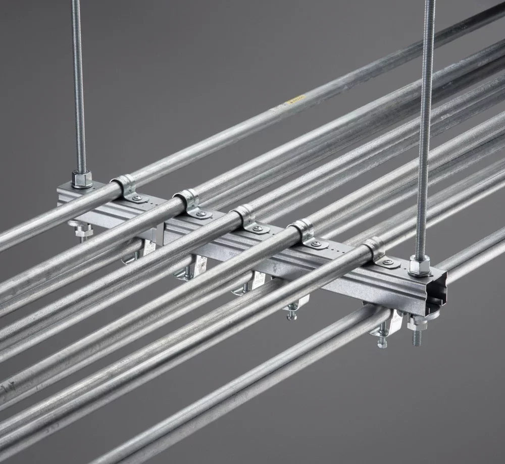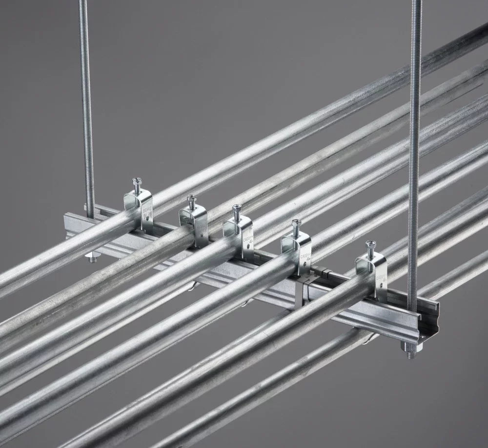 - Conduit and pipe can be placed directly on the strut profile, saving vertical space in buildings with limited room for installation