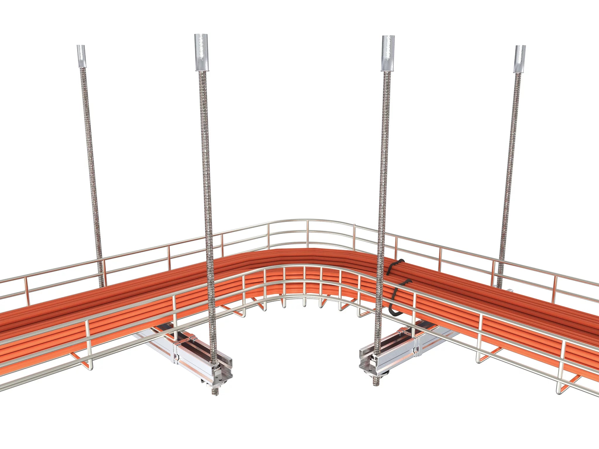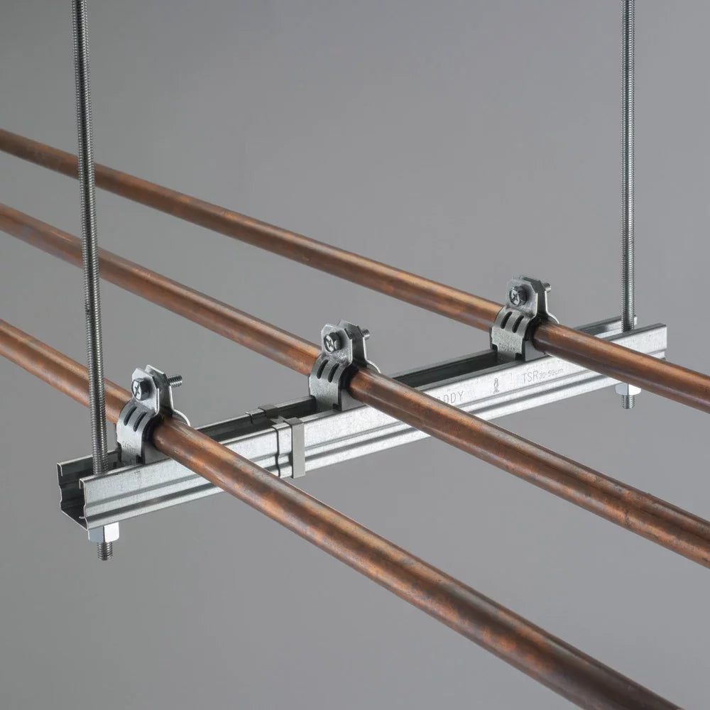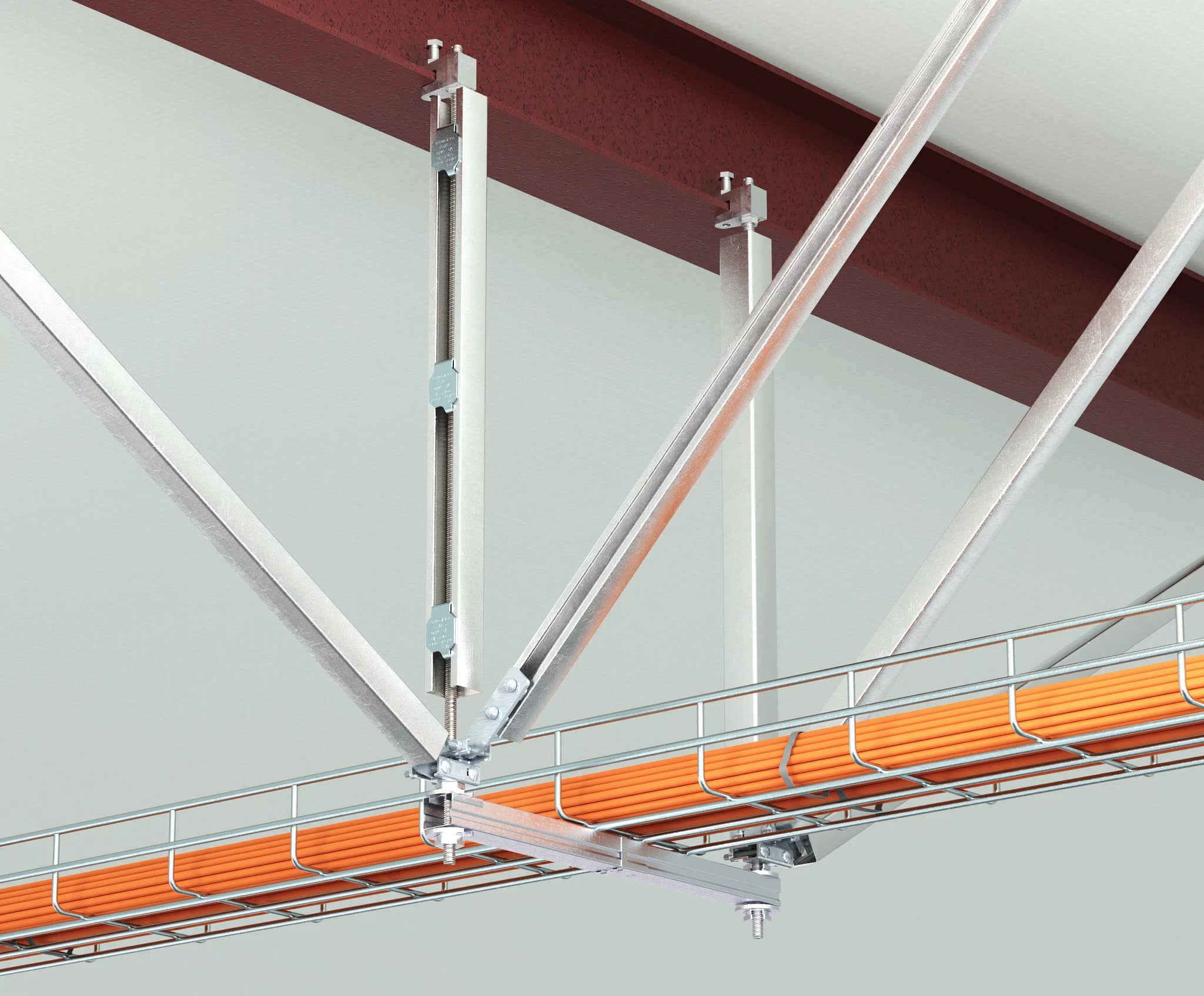 - Conduit and pipe can be placed directly on the strut profile, saving vertical space in buildings with limited room for installation