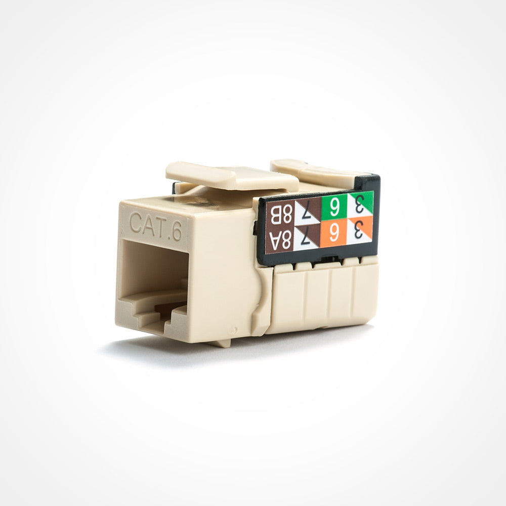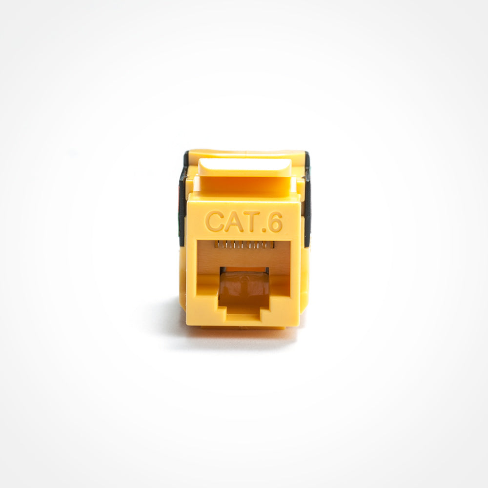 The Cat6 jack provided by us comes with a standard RJ45 plug on the outside. While on the inside, wiring slots are in place for a tool required termination. All of our networking keystone jacks have 568A and 568B color codes on the jacks in addition to the easy trouble free 110 style termination.