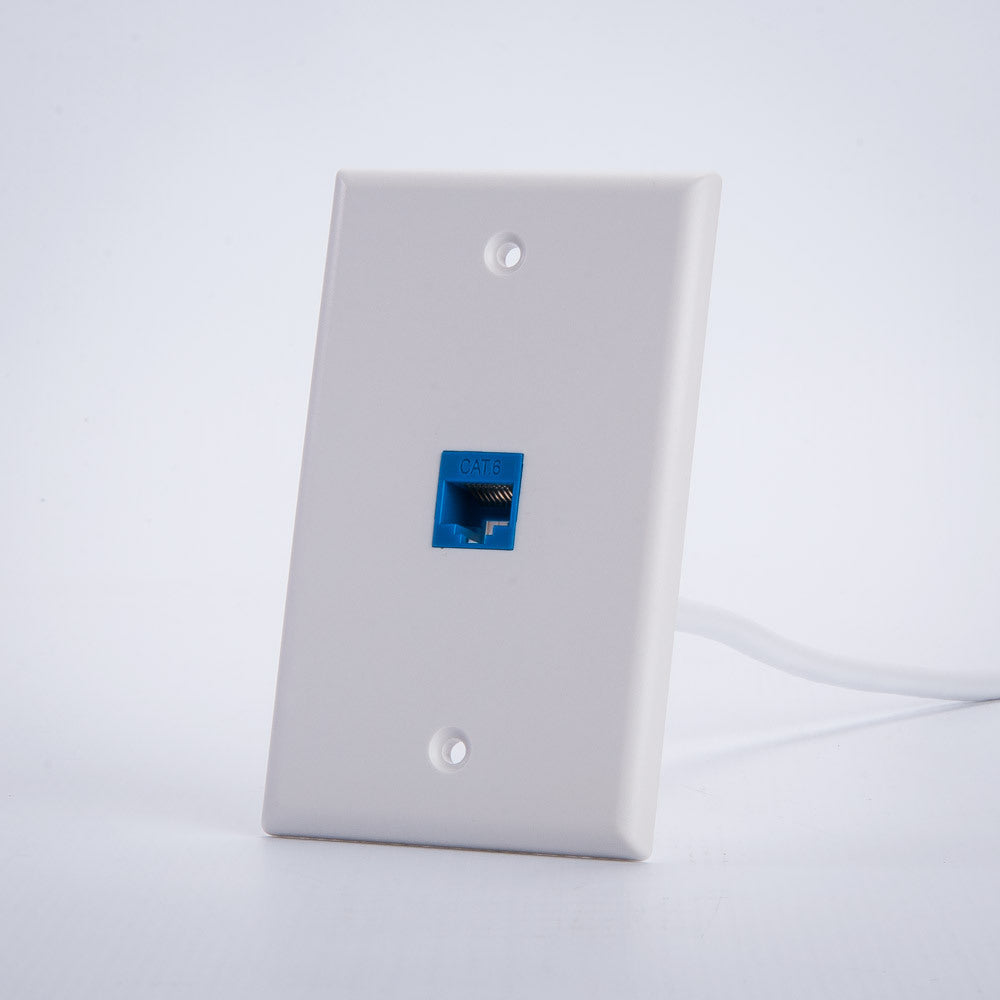 You can find a variety of keystone wall plates with us, which allow you to easily customize what you put into each wall plate in your home. You could combine one of these with a coax keystone, or even an RJ11 keystone, with just an easy snapping of each keystone into their place.