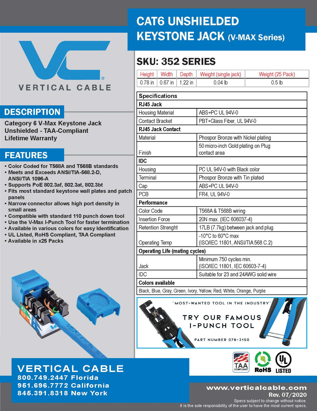 - Certifications: ETL component; UL listed; ANSI/TIA/EIA-568-B.2;ISO/IEC 11801 Class E; FCC