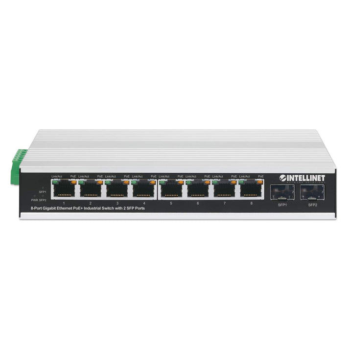 Intellinet Industrial 8-Port Gigabit Ethernet PoE+ Switch with 2 SFP Ports, 508261