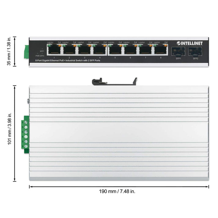 The 8-Port Gigabit Ethernet PoE+ Industrial Switch with 2 SFP Ports from Intellinet Network Solutions was designed to give you the network connections and device power you need in places that are less than calm or temperate. With its rugged, IP40-rated protective metal housing, the switch operates reliably and quietly, even in extreme temperatures that range from -40 to 167°F (-40 – 75?). In combination with its DIN-rail mounting option and two safe redundant DC power inputs with power failure alarm and plenty of other safety features, this switch is ideal for IoT applications in Industry 4.0 and more.