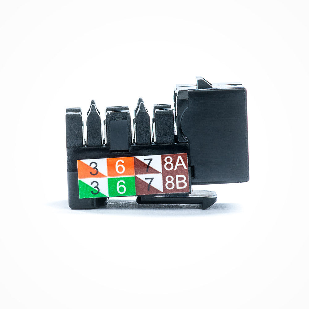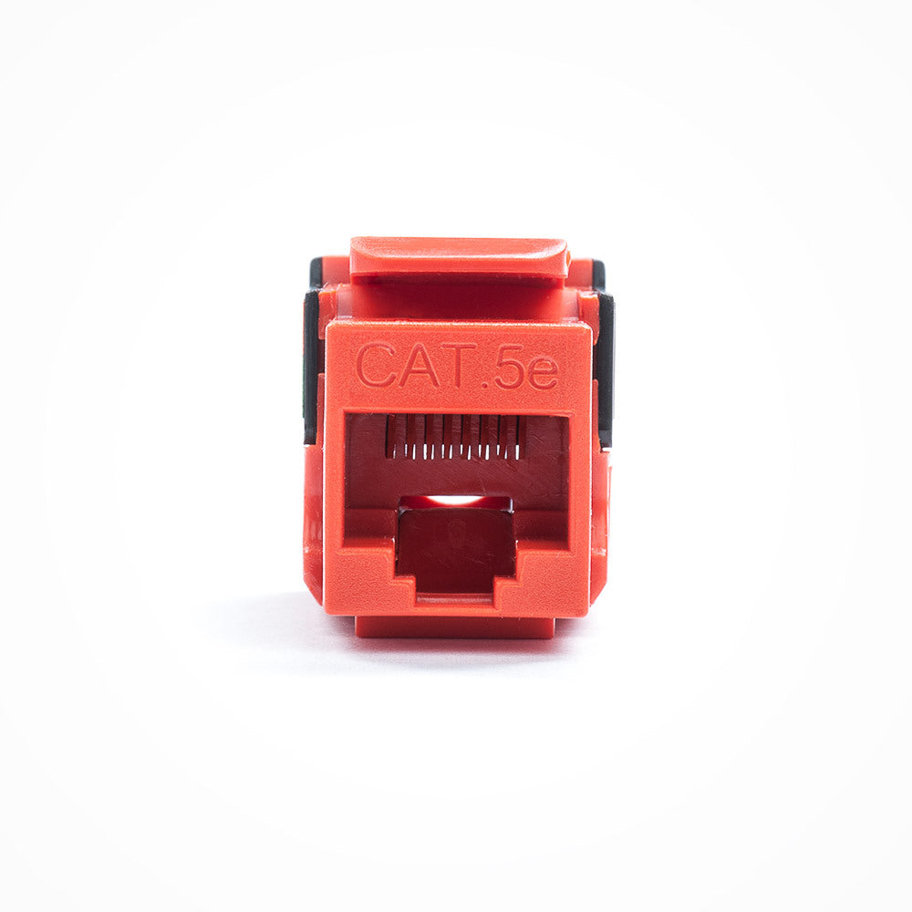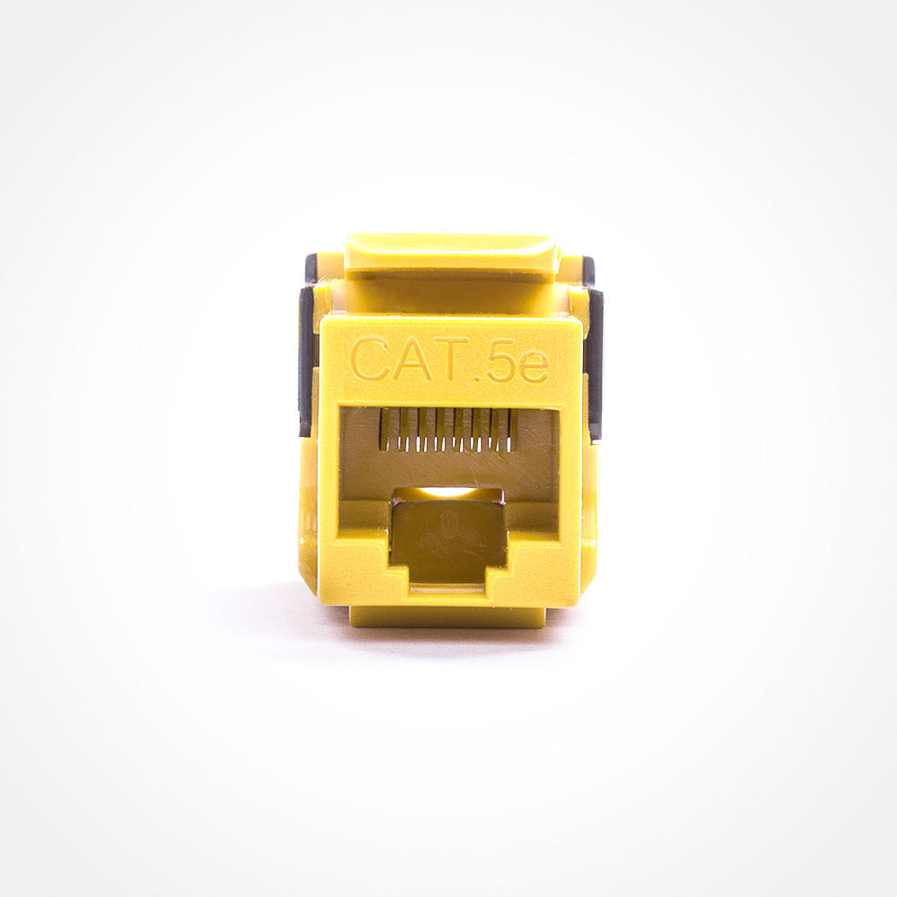 The Cat5 jack provided by us comes with a standard RJ45 plug on the outside. While on the inside, wiring slots are in place for a tool required termination. All of our networking keystone jacks have 568A and 568B color codes on the jacks in addition to the easy trouble free 110 style termination.