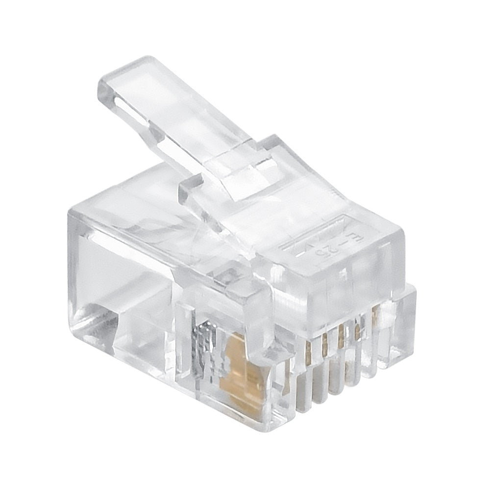 RJ11 Plug for Stranded Round Wire - 100 Pack
