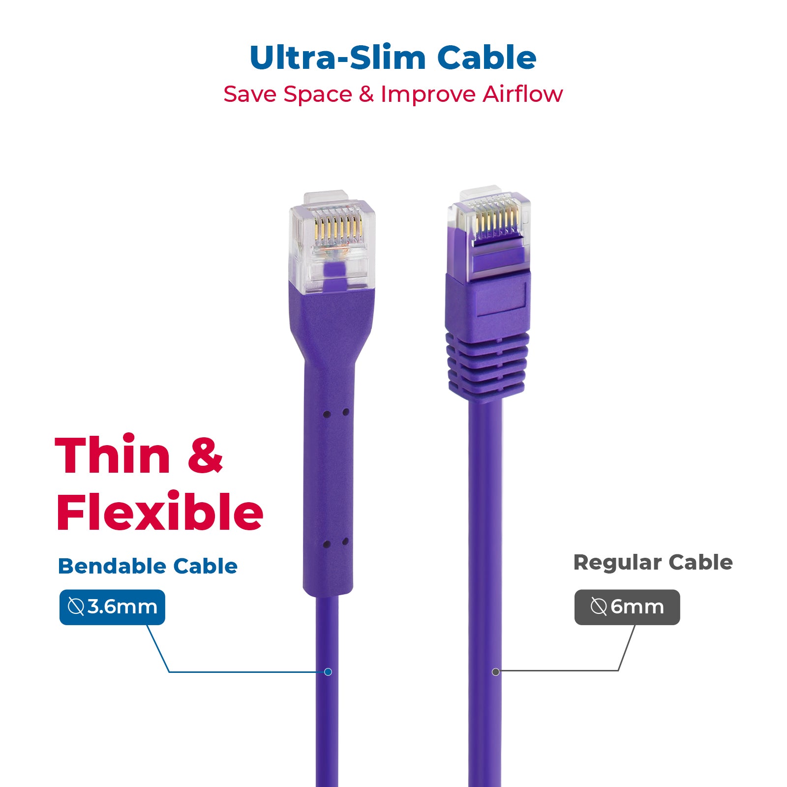 Cat6A UTP Bendable Slim Ethernet Network Cable, 28AWG - Purple