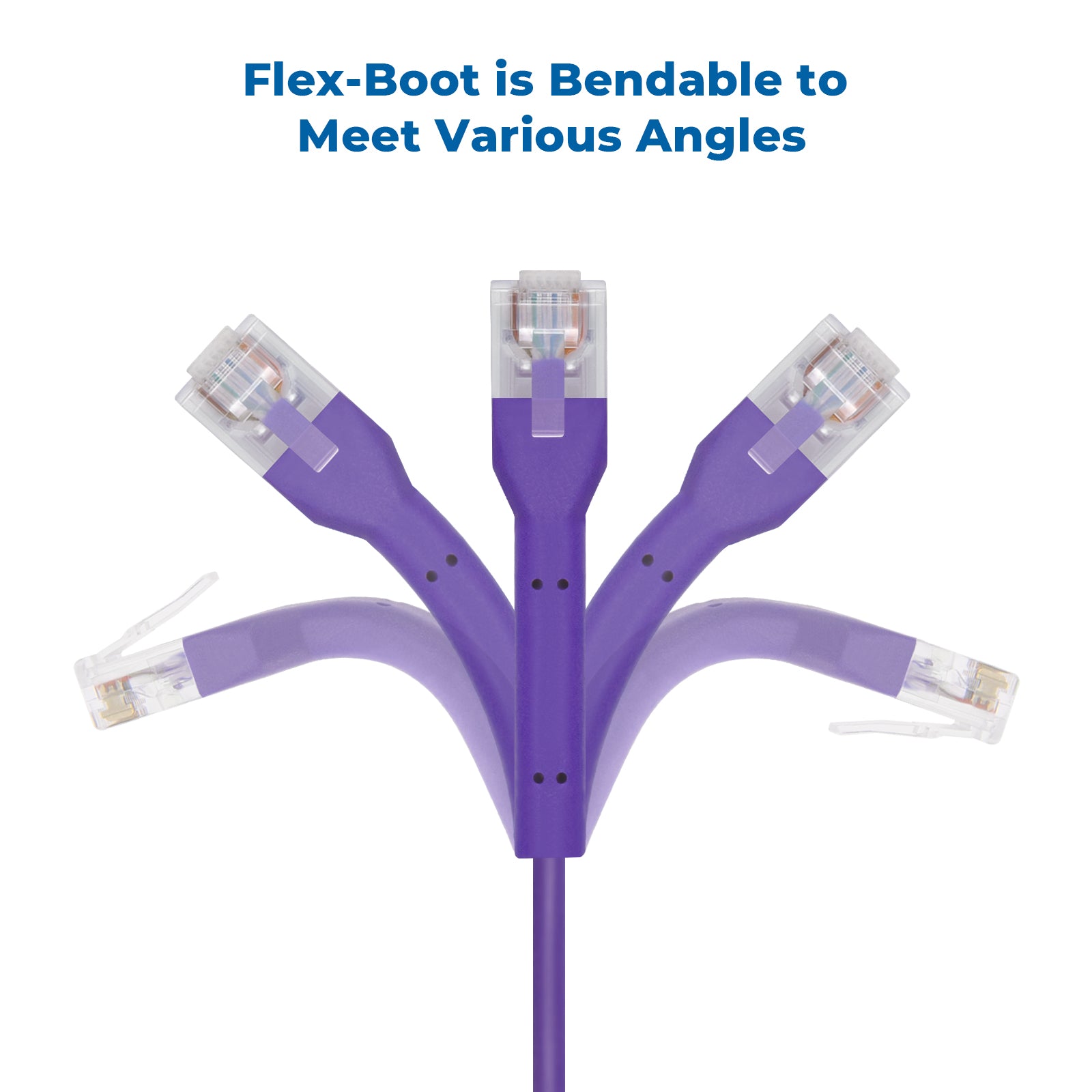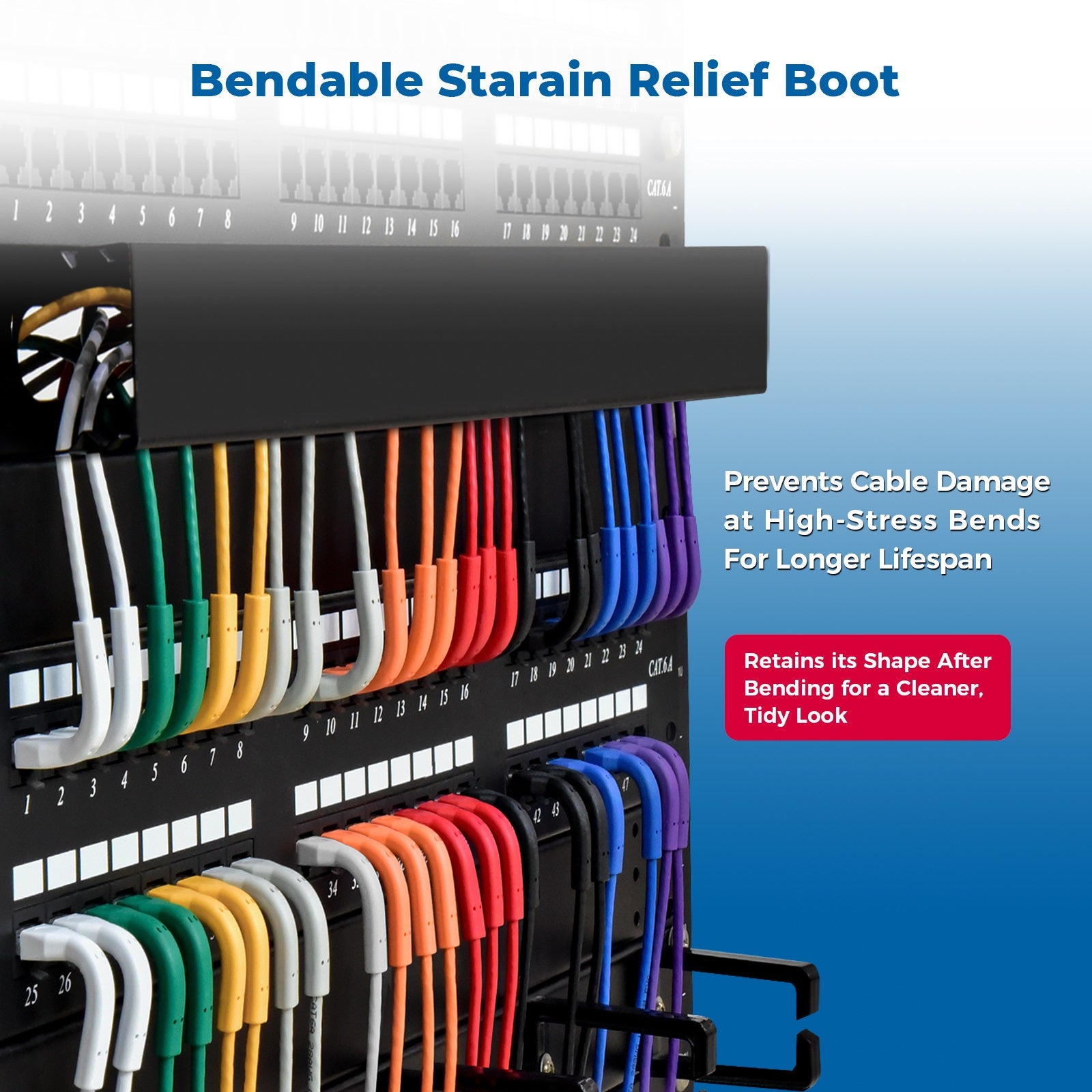 Unique boot design enables multi-angle bending of the RJ45 connector for easier cable management in confined spaces. -