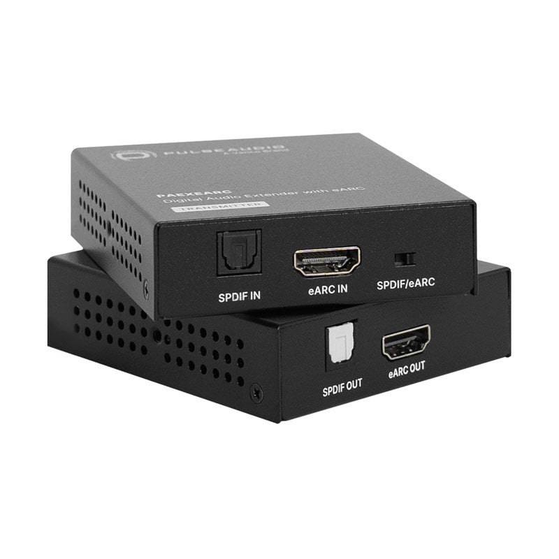 The PulseAudio PAEXEARC digital audio extender with eARC is capable of transmitting HDMI eARC or ARC digital audio signals up to 328ft (100m) over a single CAT5e/6 cable. It can also transmit digital optical audio signals up to 656ft (200m). The receiver is equipped with a built-in ARC backup plan, ensuring that both SPDIF and HDMI outputs are active to accommodate various scenarios. The extender features bi-directional PoC (power over cable), allowing either end to be plugged into power for flexible installation. It also supports CEC pass-through when HDMI eARC/ARC audio is selected.