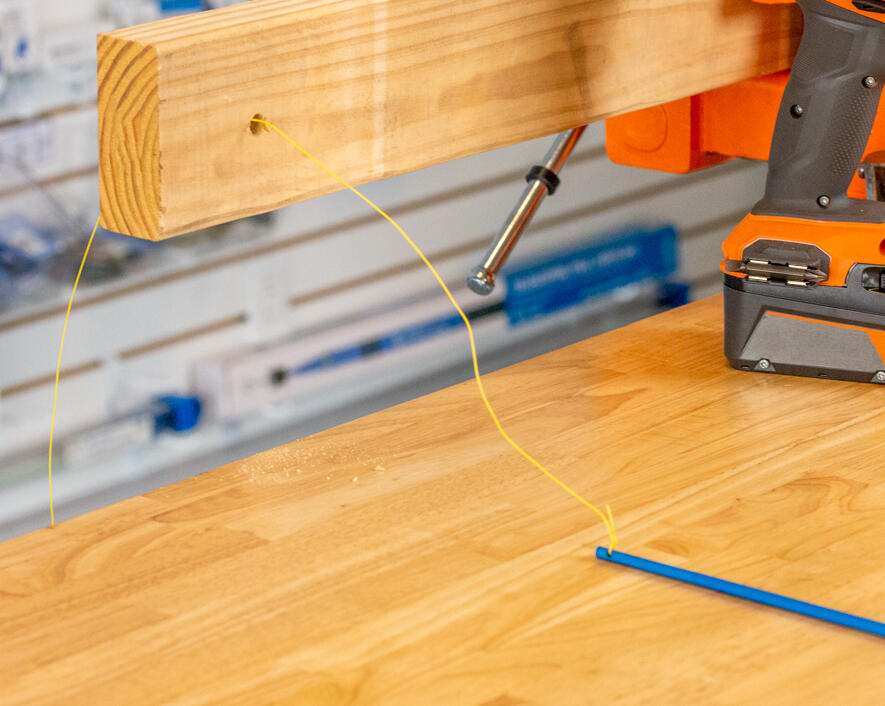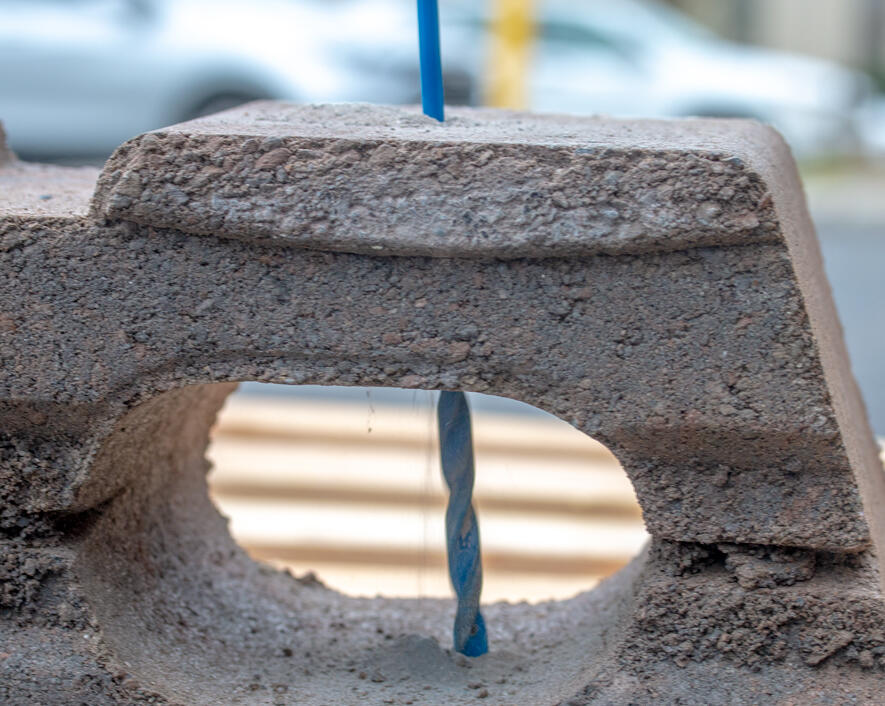 - Holes on the bit head and chuck allow for pulling of wires after drilling