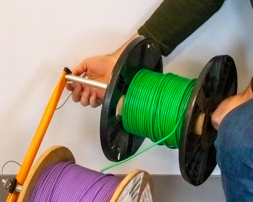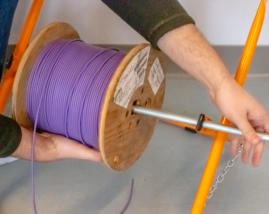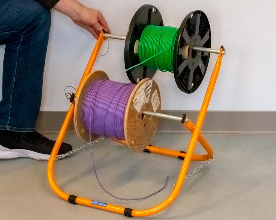 - Able to hold a single cable reel weighing up to 100 lb (45.4 kg) and measuring up to 20” (50.8 cm) wide and 17” (43.2 cm) in diameter