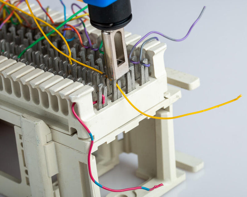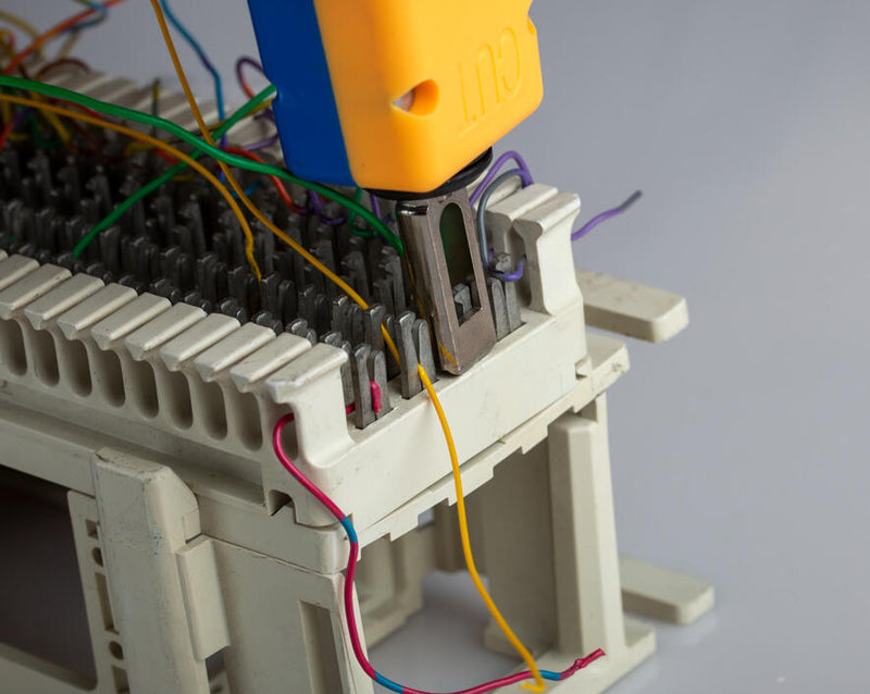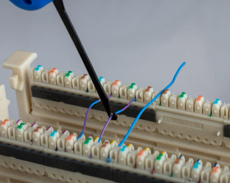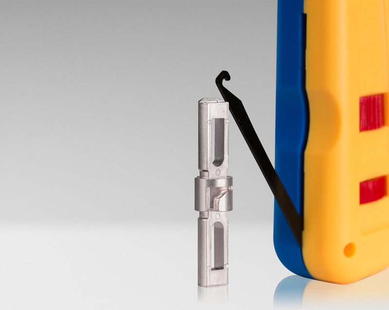 - Cleanly terminates and trims wires in 66-style cross connect blocks
