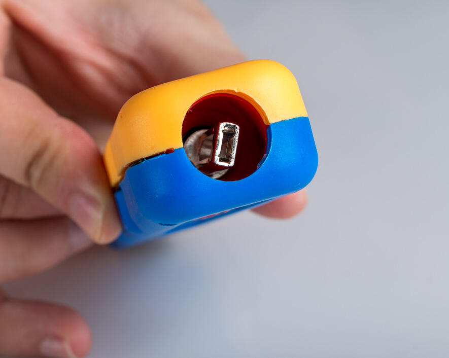 • Color coded body is half yellow (cut side) and half blue for ease of use