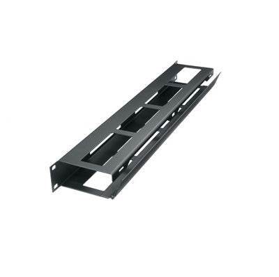 • Conceal patch cables while providing cable strain relief with the hinged horizontal cable managers. These 19” cable managers provide a strong, attractive method for organizing patch cords and maintaining the required bend radius. The hinged front panel has a magnetic closure and conceals cables dressed between components and cable chases. Ample cable pass-throughs provided for dressing cables above, below, to the sides and behind the cable manager. Finished in a durable black powder coat.