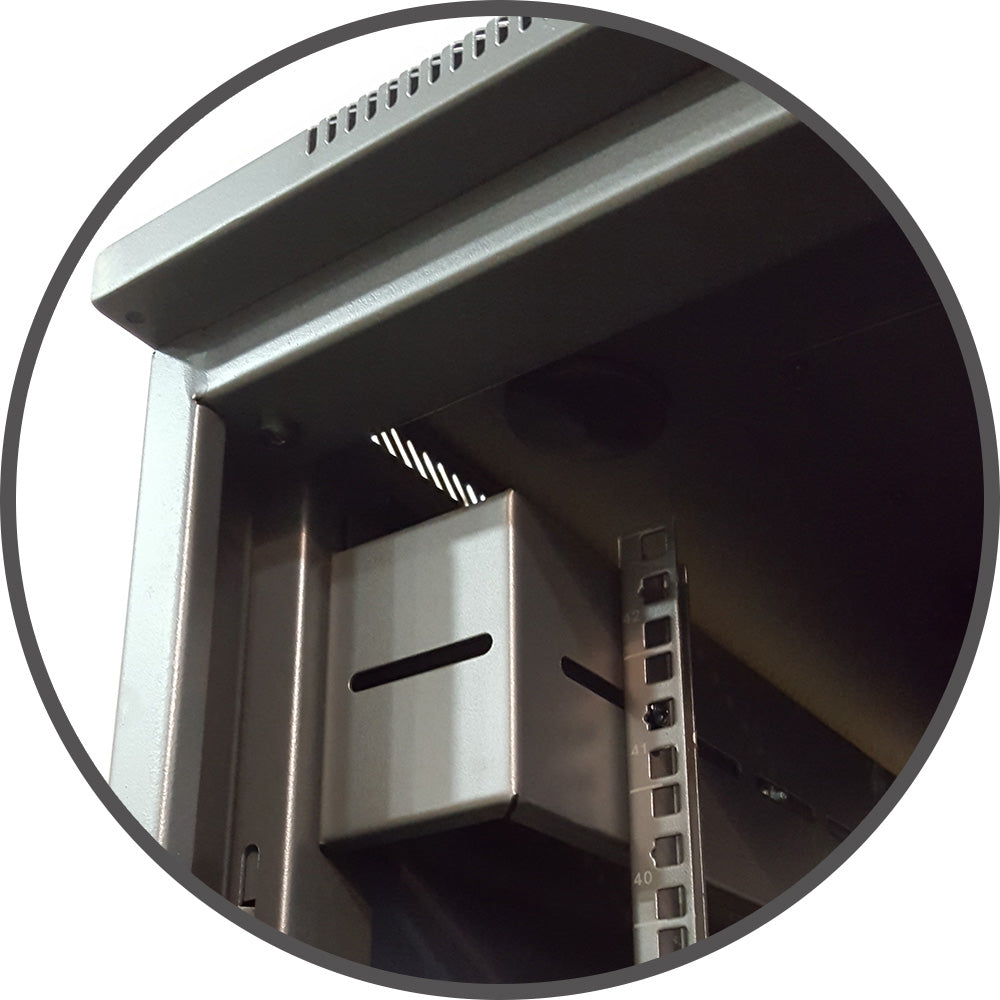 The 19" x 24" acrylic framed reversible door provides extra ventilation for your servers and equipment. In addition, all panels are vented to increase air circulation.