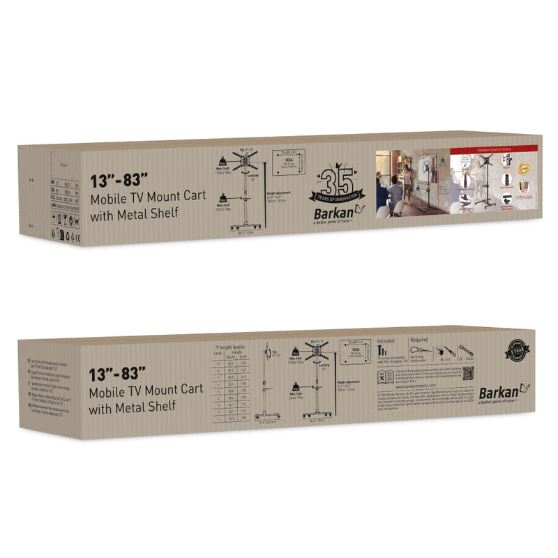 Barkan 13" - 83" Mobile TV Mount Cart with Metal Shelf - Tilt & Height Adjustment