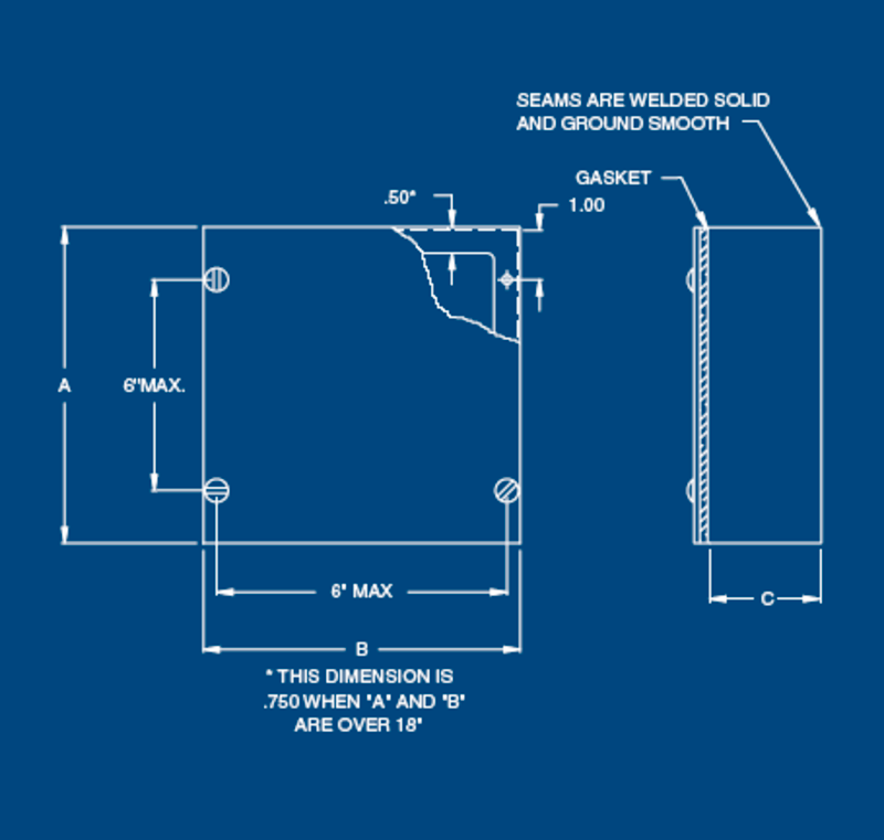 Fabricated in accordance with UL specifications from code gauge steel. Continuously welded seams ground smooth. Neoprene gasket attached to cover with oil resistant adhesive. No mounting holes or mounting feet.