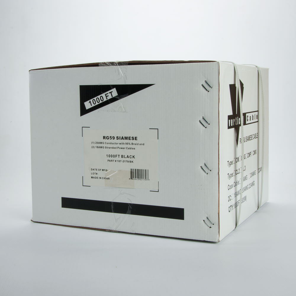 • Vertical Cable 1000ft RG-59 Siamese Cable with 18/2 Power, Black