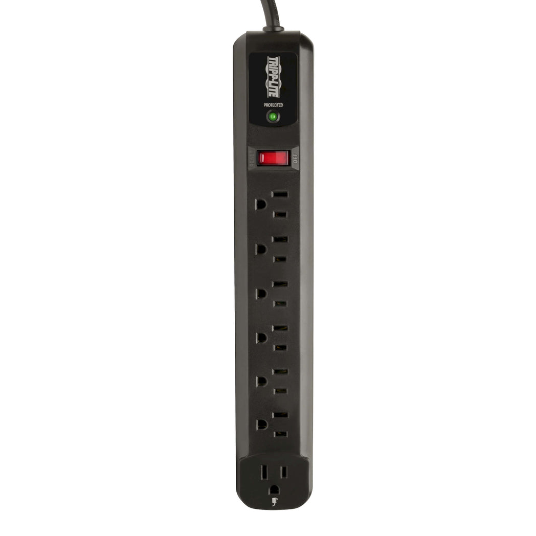 Tripp Lite's TLP74RB offers economical AC surge suppression for protection of workstations, desktop PCs, telecom systems and other sensitive electronics. Built-in AC surge suppression shields connected equipment from damage and performance problems due to transient surges. TLP74RB offers 7 total outlets (6 at right angle and 1 designated transformer plug outlet), 4 foot cord and diagnostic LED to warn of suppressor damage. AC suppression rated at 540 joules shields equipment from surges and line noise. Attractive black housing with keyhole mounting tabs offering convenient protection of desktop computer equipment and accessories.