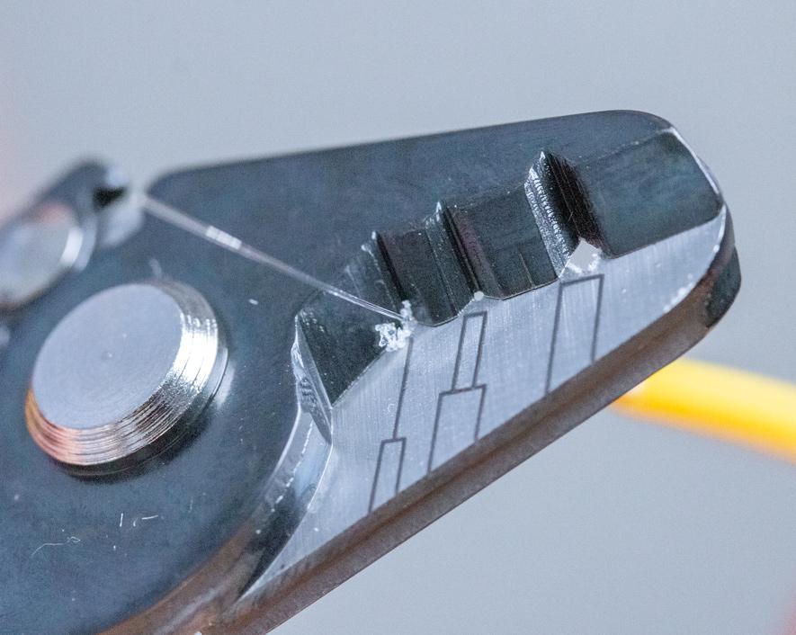 - Fiber Stripper strips the 1.6-3 mm fiber jacket, 600-900 micron buffer coating, and 250 micron cable down to expose the 125 micron glass fiber