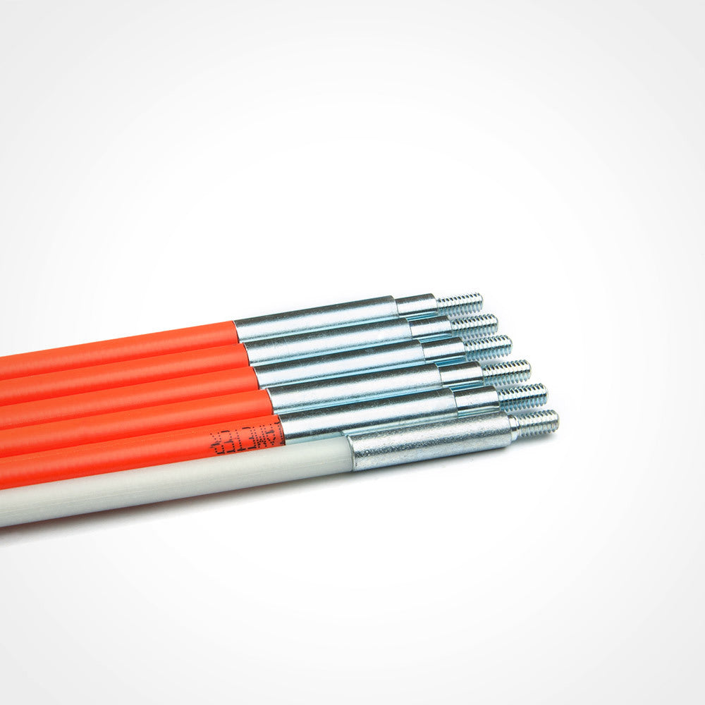 If you've ever used fiberglass fish rods, you know how painful and annoying fiberglass splinters can be. The protective coating on these fish rods guards your hands against splinters. These flexible yet rigid rods will pull wire across long distances. 1/4-Inch (6 mm) and 3/16-Inch (5 mm) diameter rods can connect together for added versatility. The set includes attachments and glow in dark rods to help make the job easier