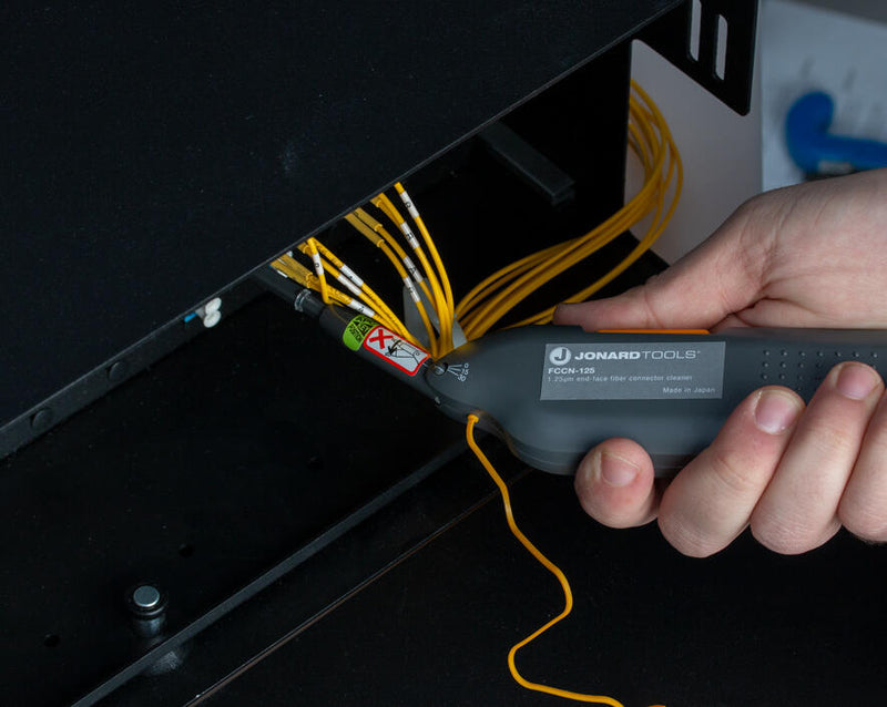 The Jonard Tools FCCN-125 Fiber End-Face Ferrule Cleaner is designed to provide exceptional cleaning performance on fiber optic connectors. It cleans 1.25 mm ferrules in recessed fiber optic adapters or individual LC or MU connectors.