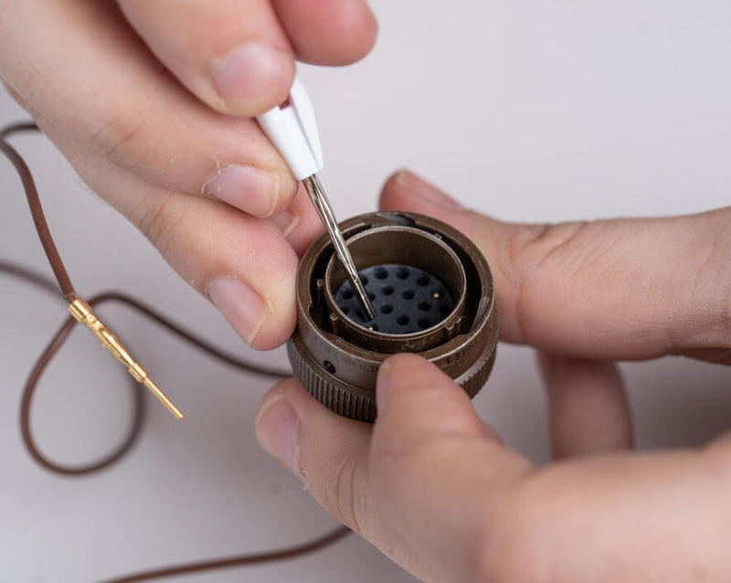 This tool is perfect for inserting and extracting size 20 front release contacts made by most manufacturers.